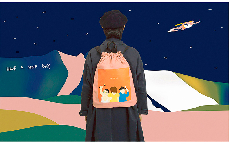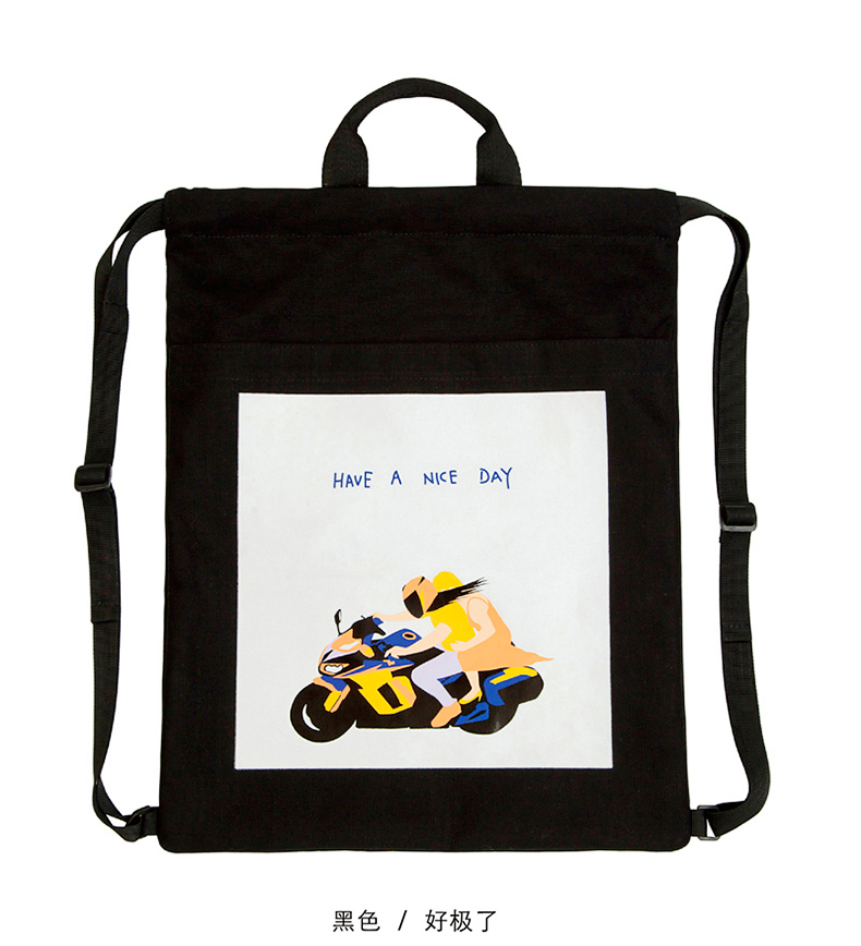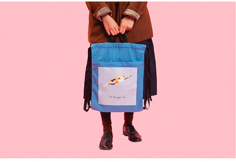 YIZI大世界束口手提双肩两用包-黑色/粉色/蓝色
