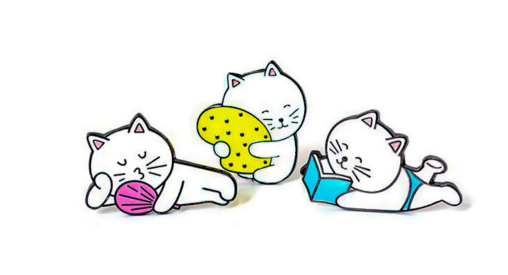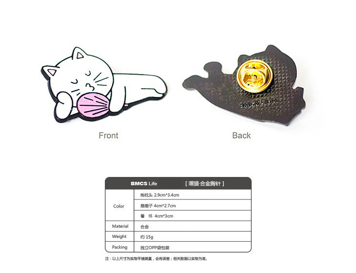 嘿喵合金胸针-抱抱枕/看书/扇子