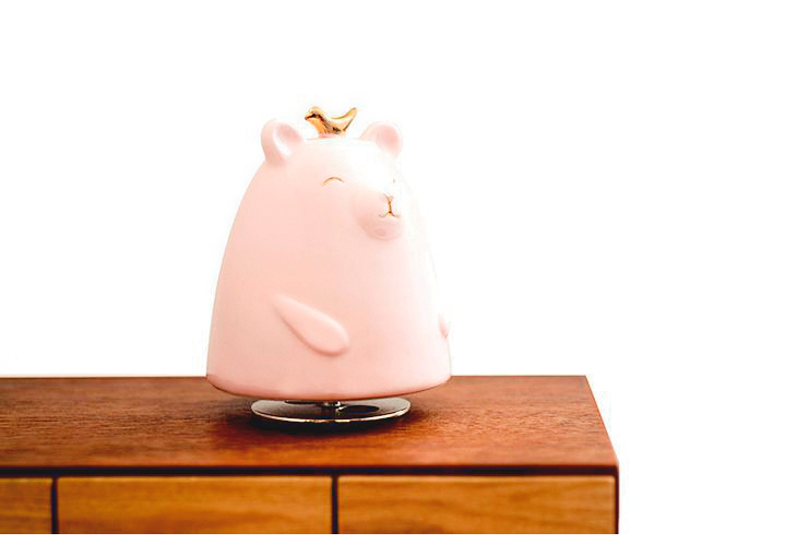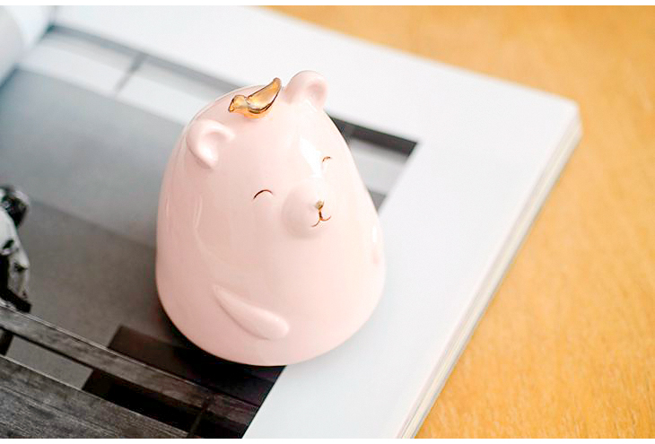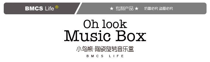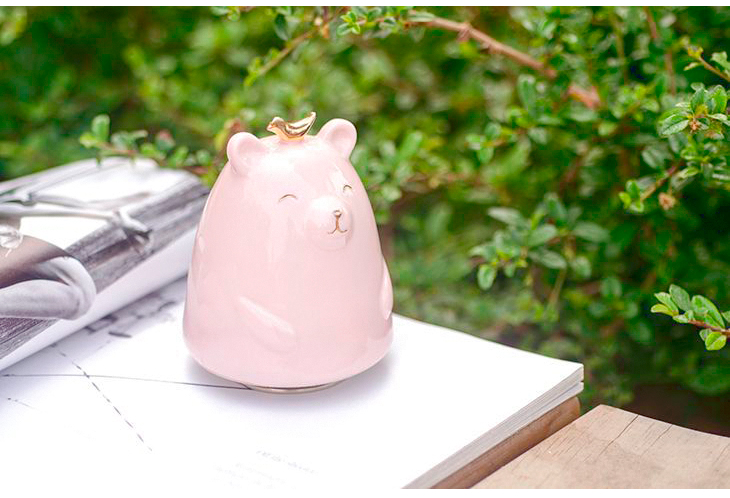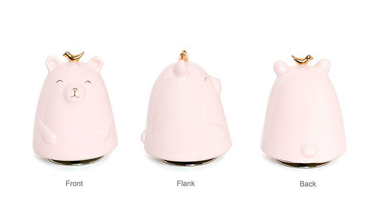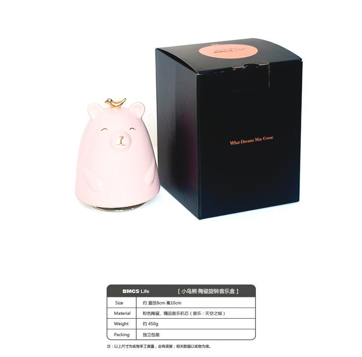 粉色陶瓷旋转音乐盒-熊&小鸟