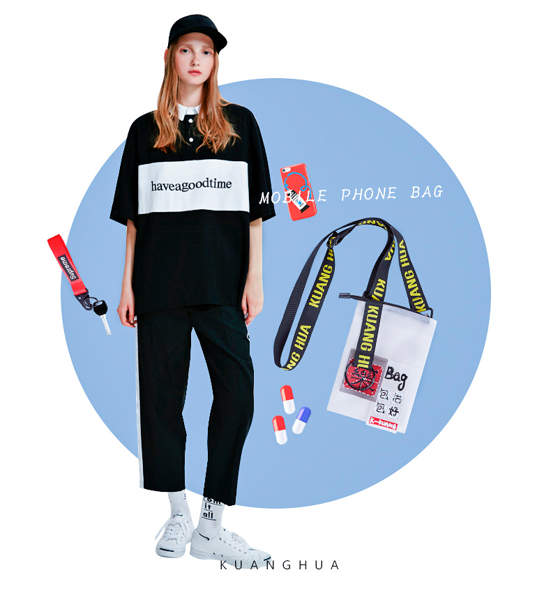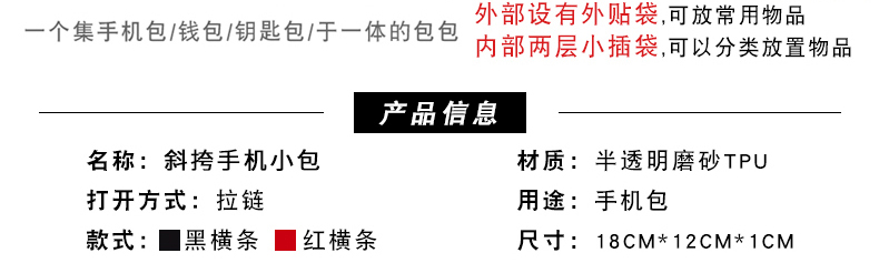 哐花村斜挎手机包-黑横条/红横条