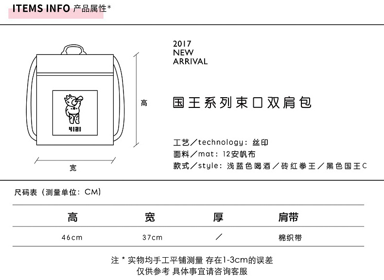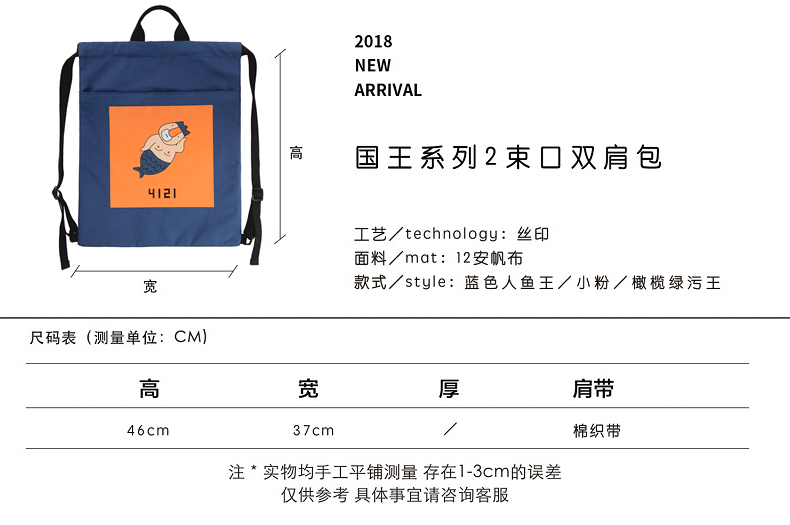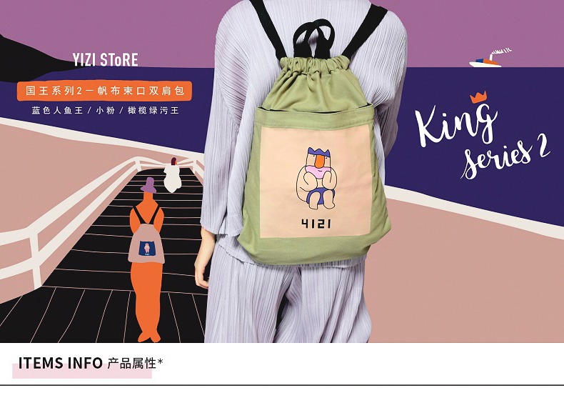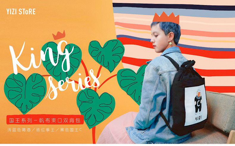 YIZI国王束口双肩包-深蓝/粉色/浅绿/黑色/橙色/浅蓝