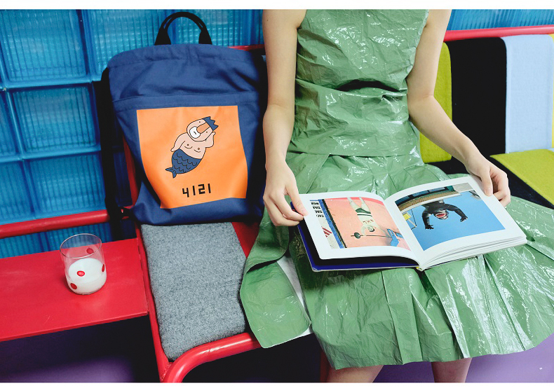 YIZI照片系列单肩包-黑白小女孩/咖色小男孩/绿色看报纸/橙色游泳女孩