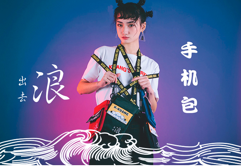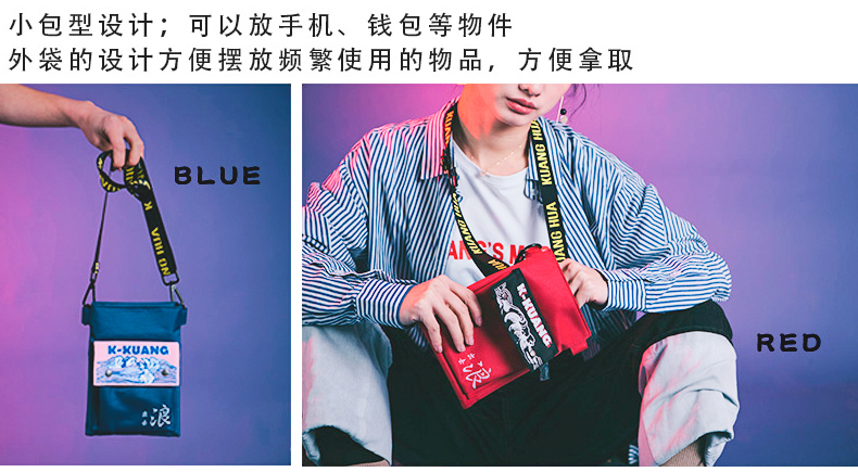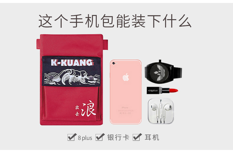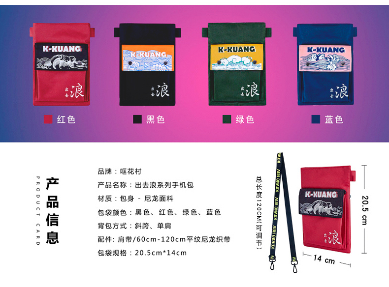 哐花村出去浪斜挎单肩手机包-红色/黑色/绿色/蓝色