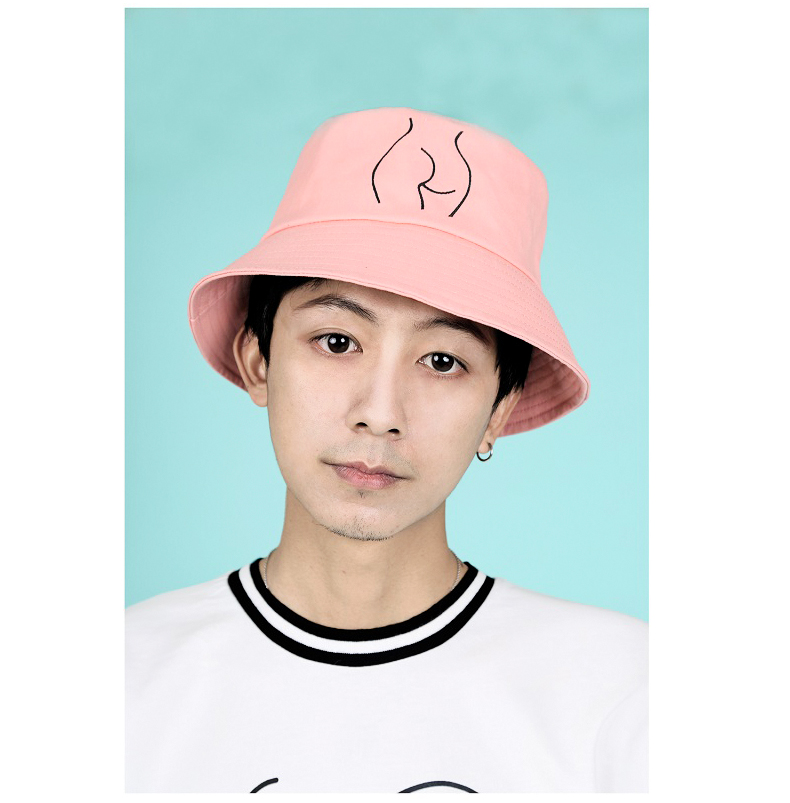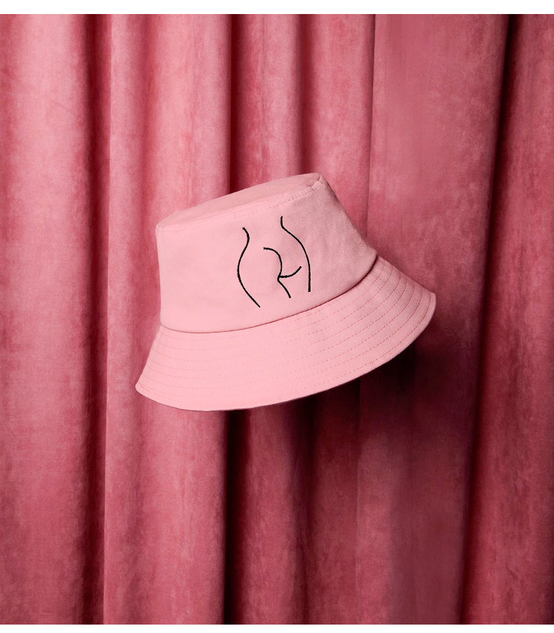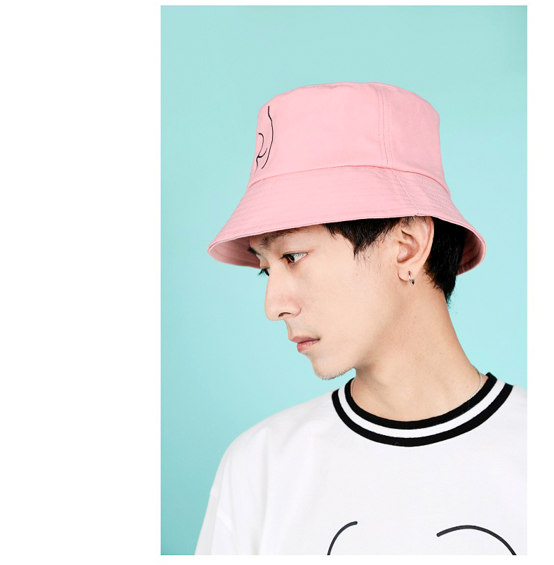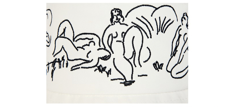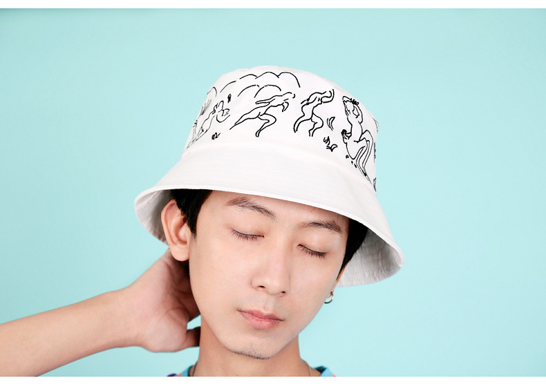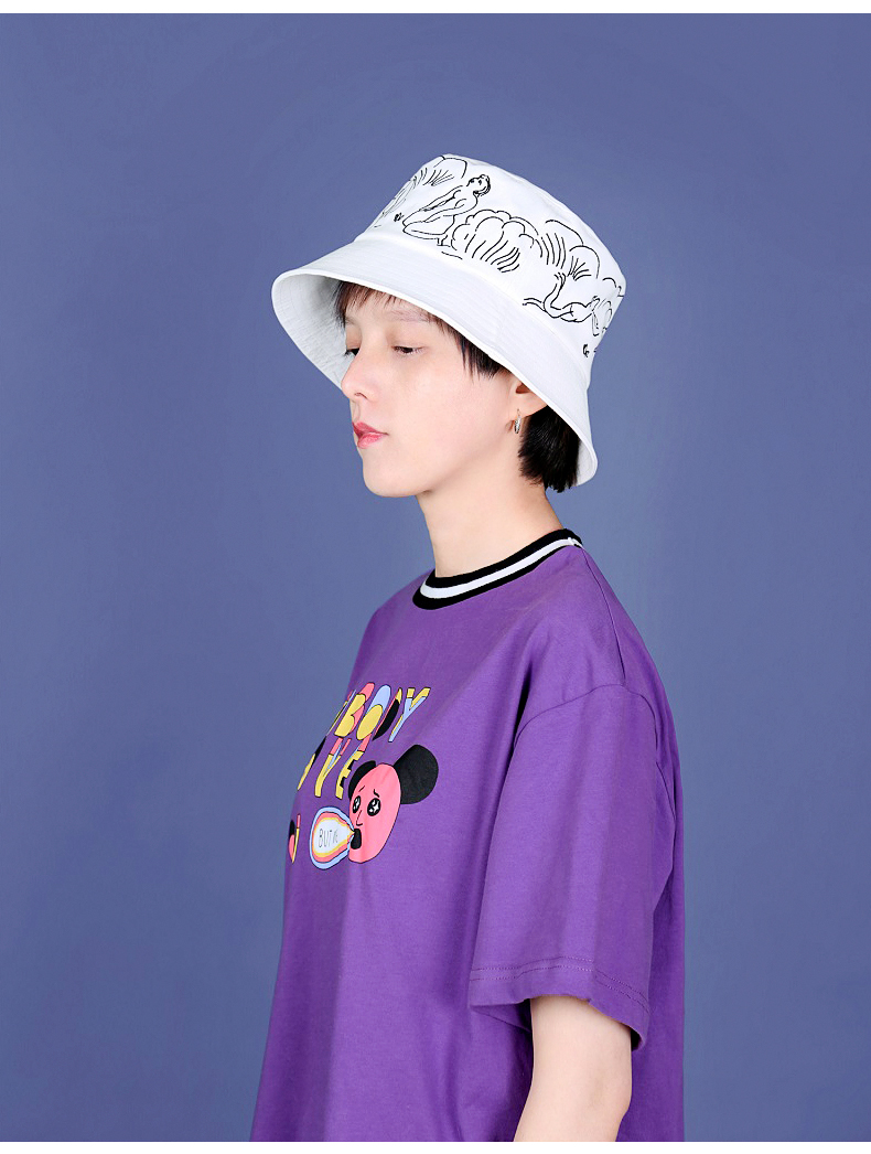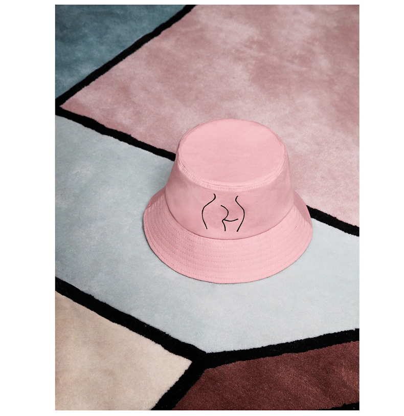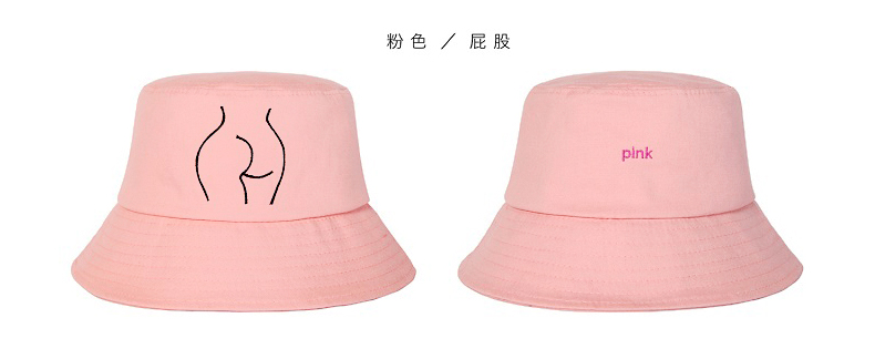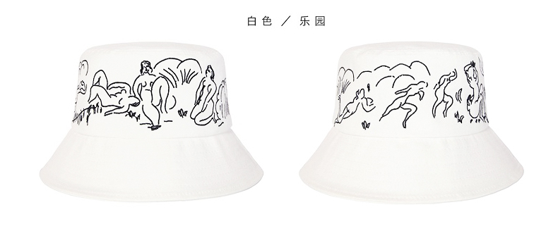 YIZI人物线条渔夫帽-黑色五官/白色乐园/粉色屁股/蓝色胸部