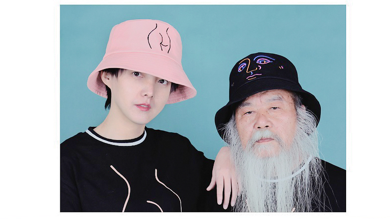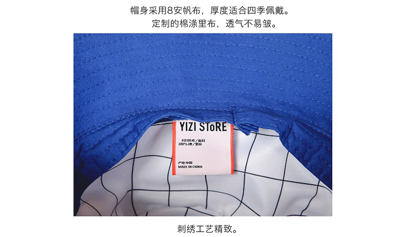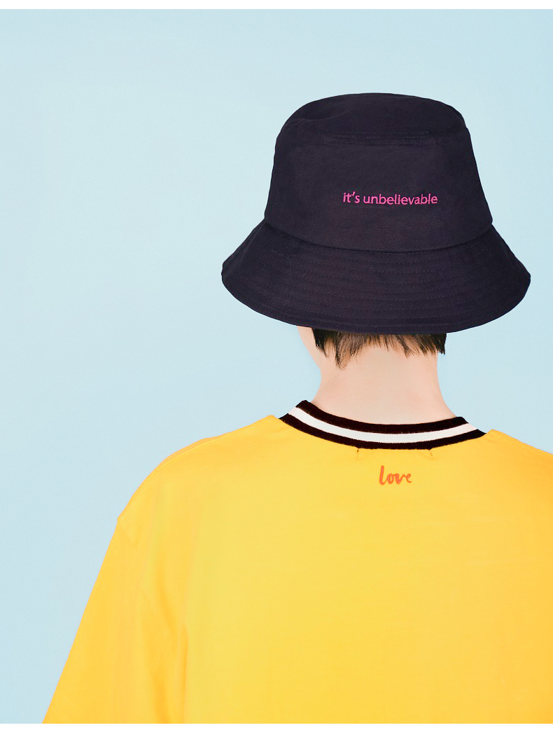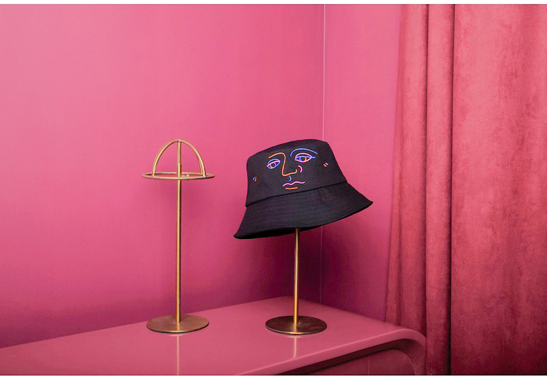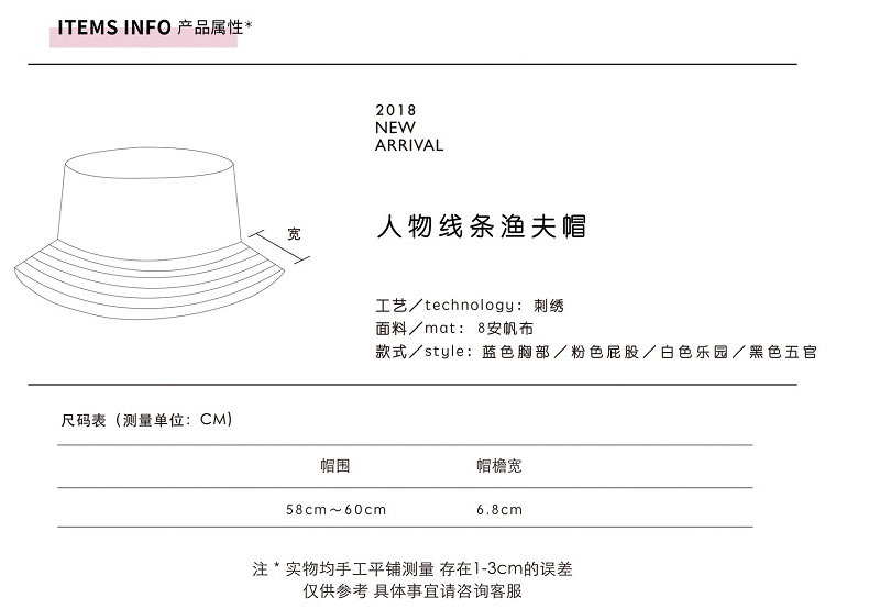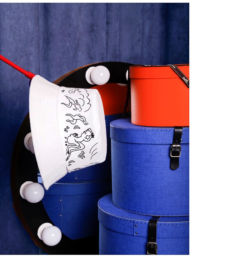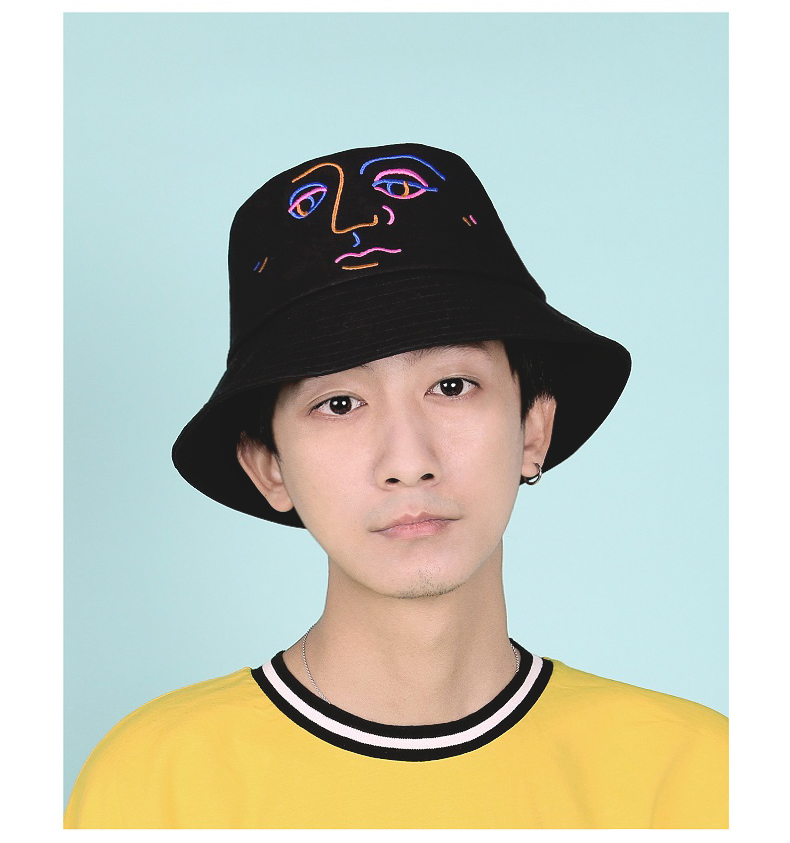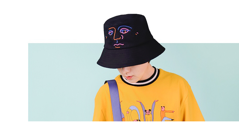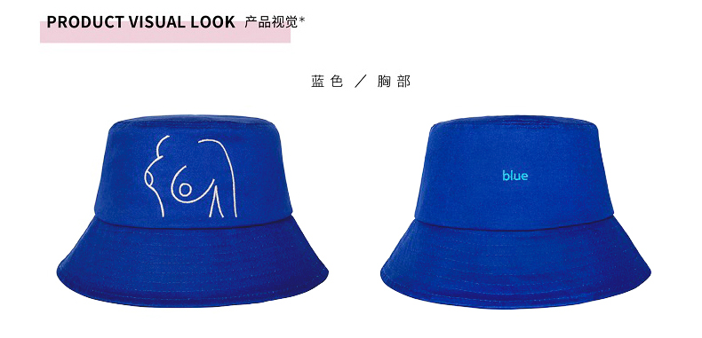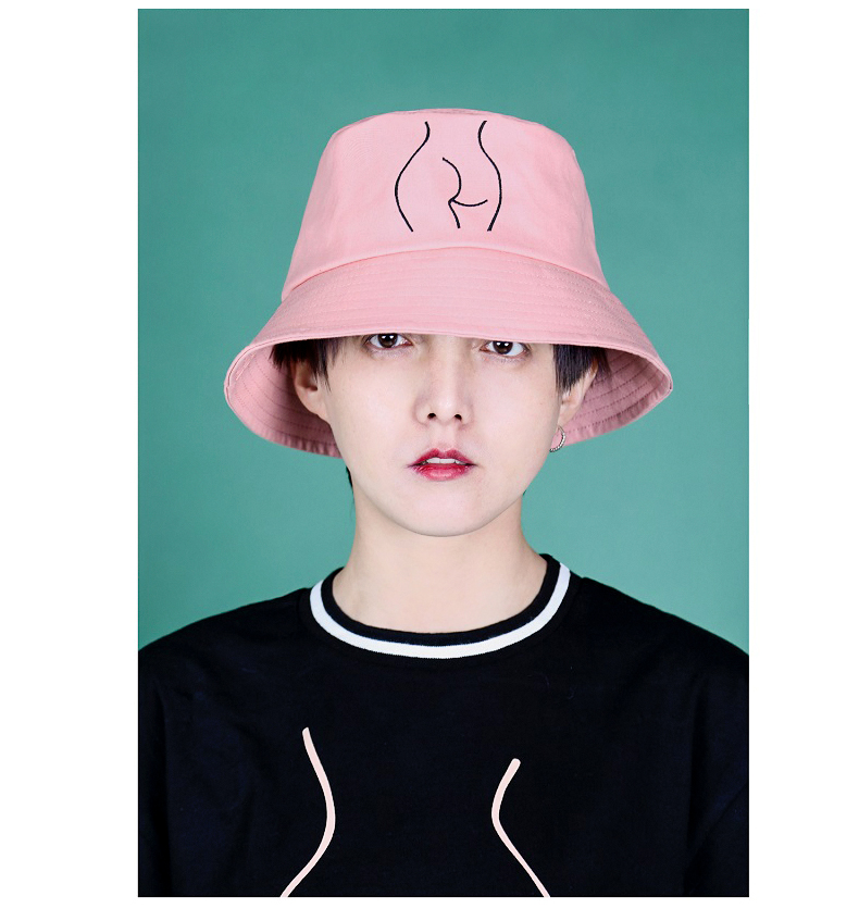 YIZI人物线条渔夫帽-黑色五官/白色乐园/粉色屁股/蓝色胸部