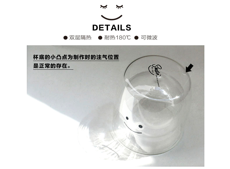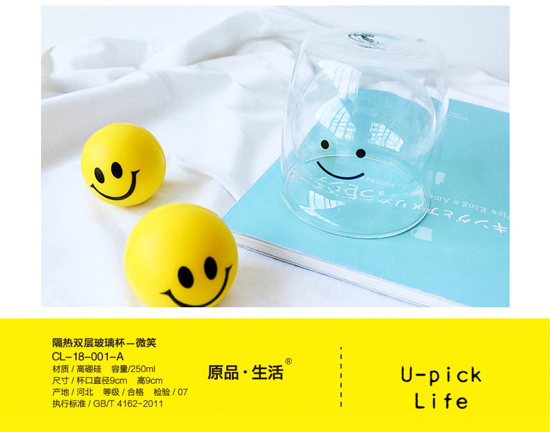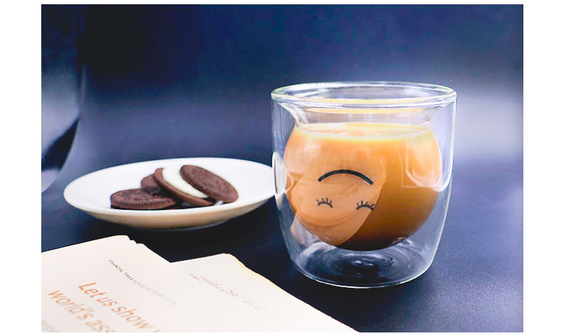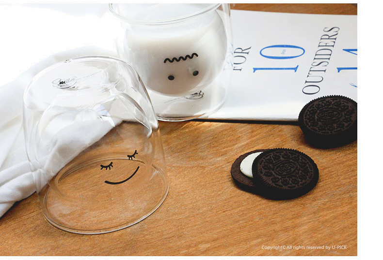 原品表情隔热双层玻璃杯-微笑/害羞/撇嘴