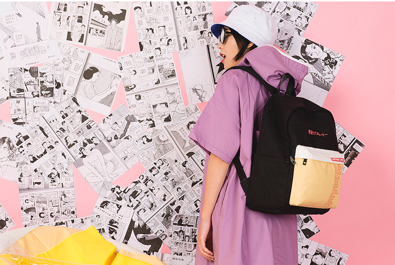 KIITOS-LOVE PEACE厚帆布撞色双肩包-爱情故事/游戏结束