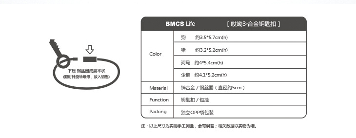 哎呦三代合金钥匙扣-狗/猪/河马/企鹅