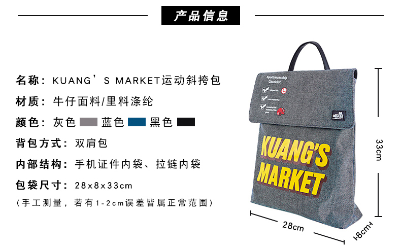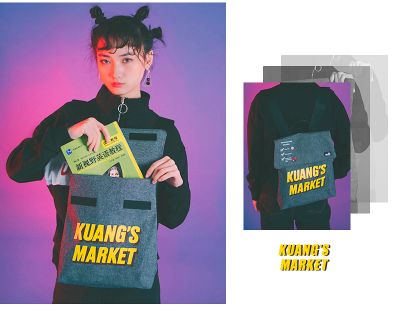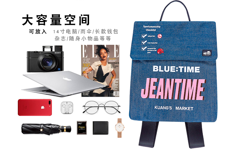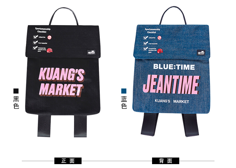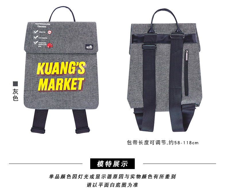 哐花村帆布电脑双肩背包-蓝色/黑色/灰色