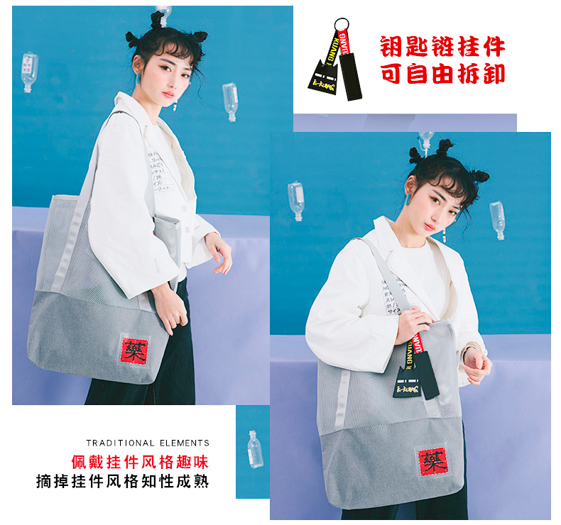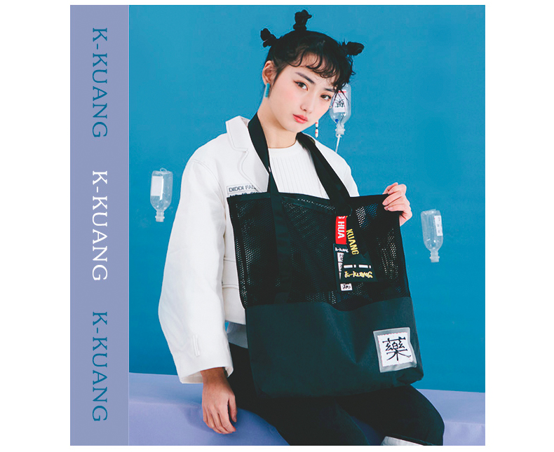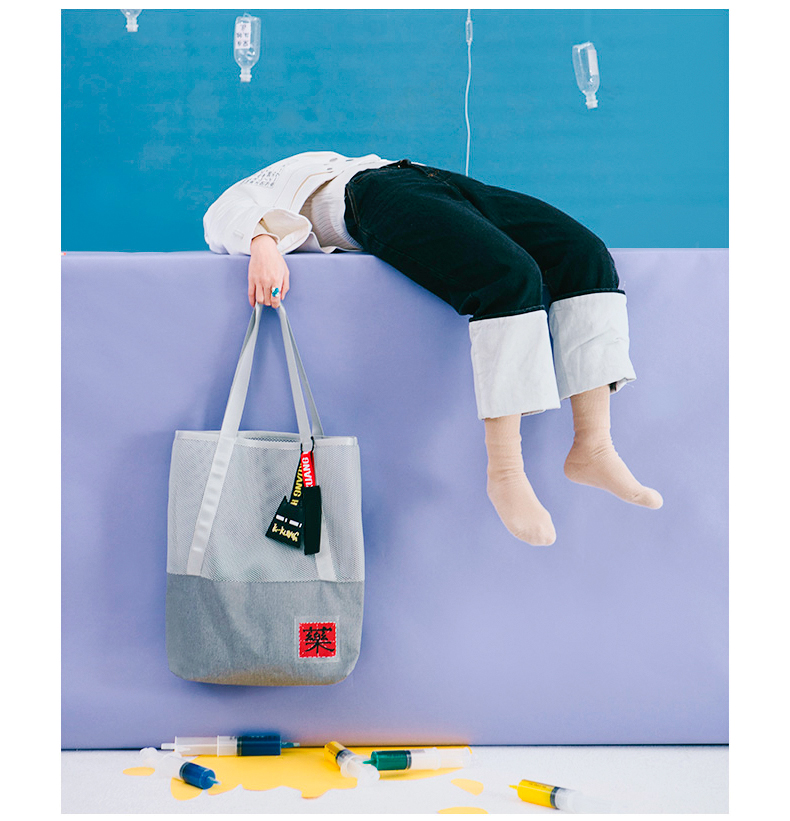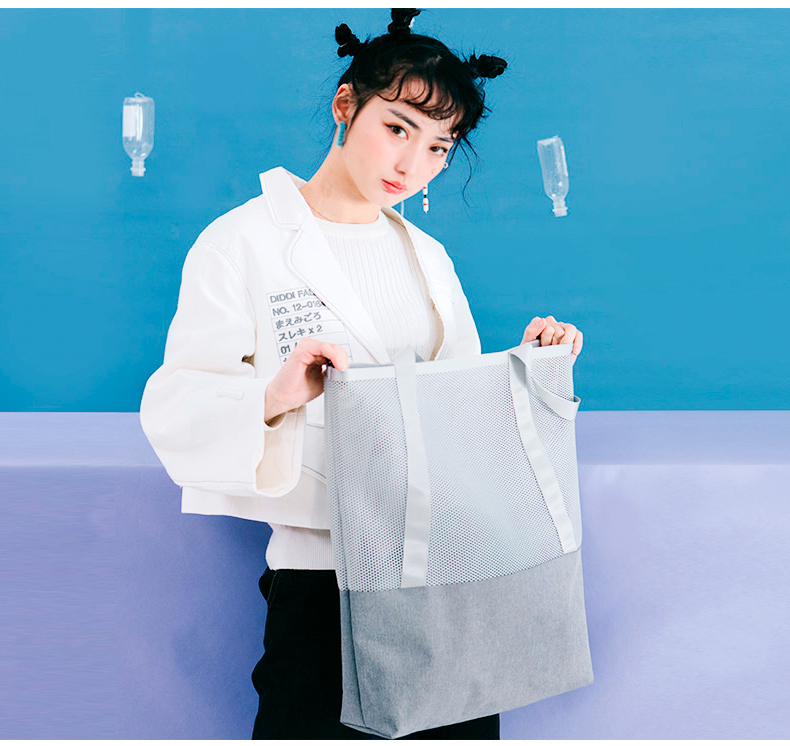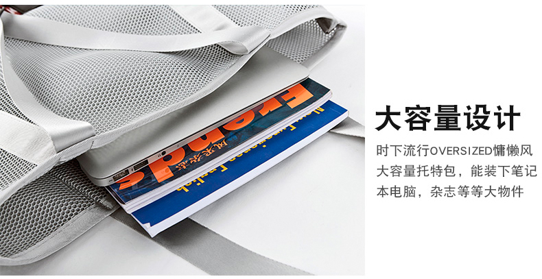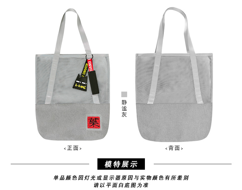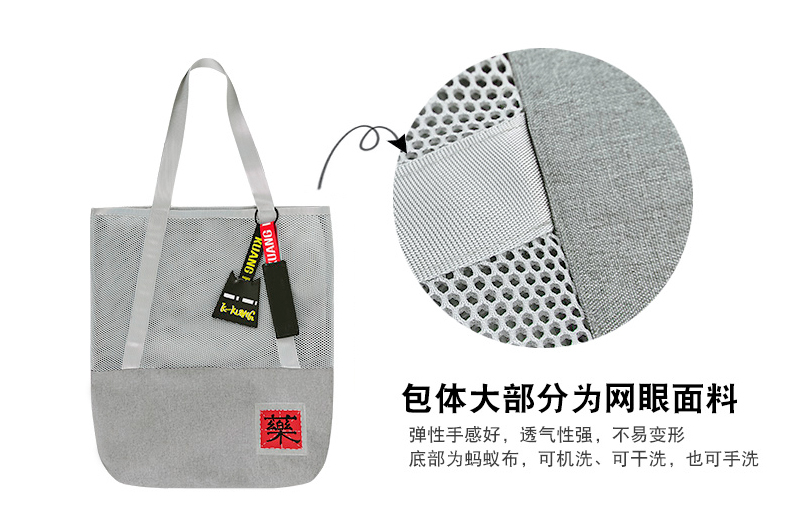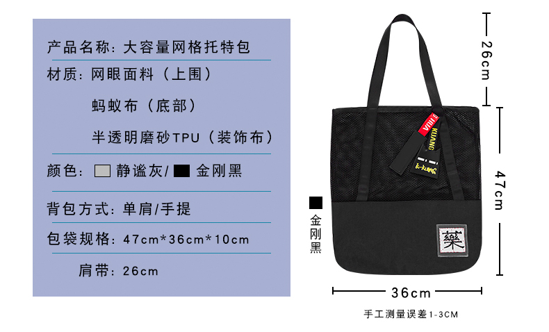 哐花村大容量网格托特包-静谧灰/金刚黑