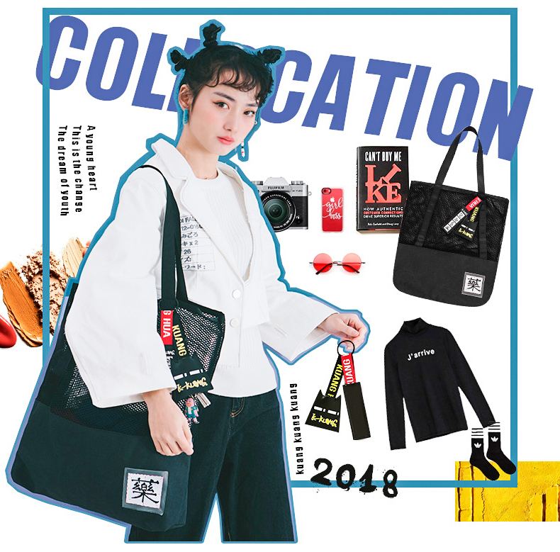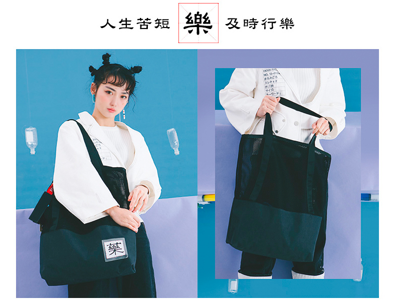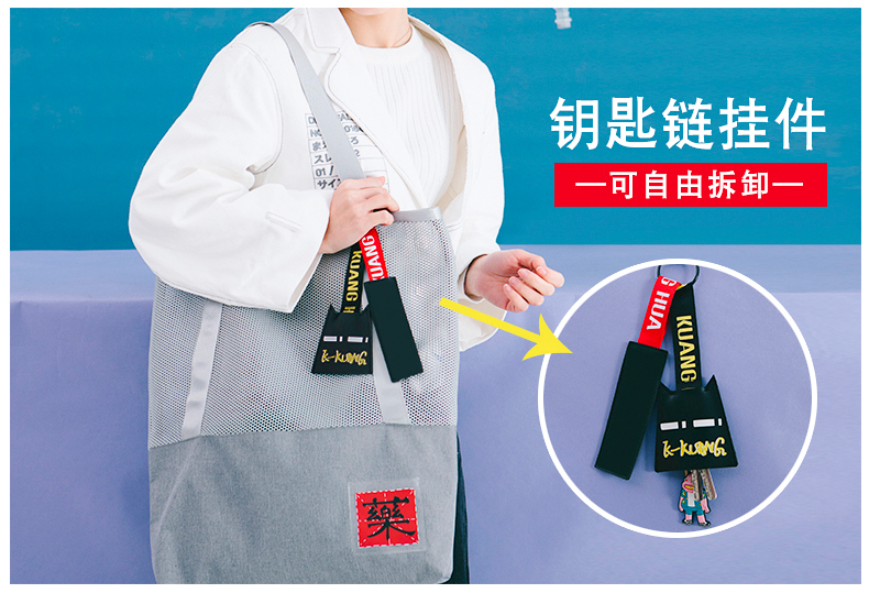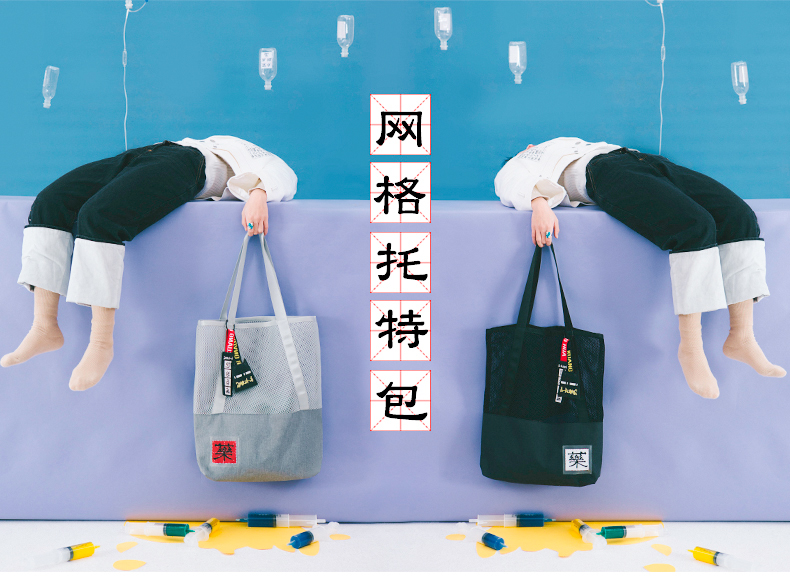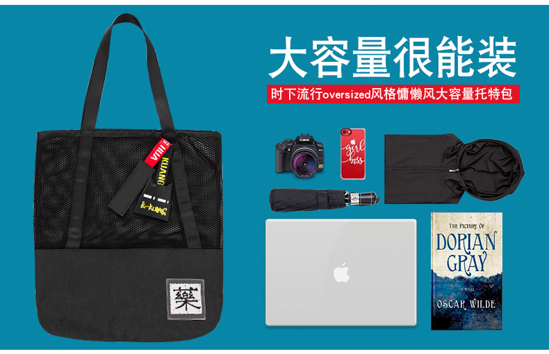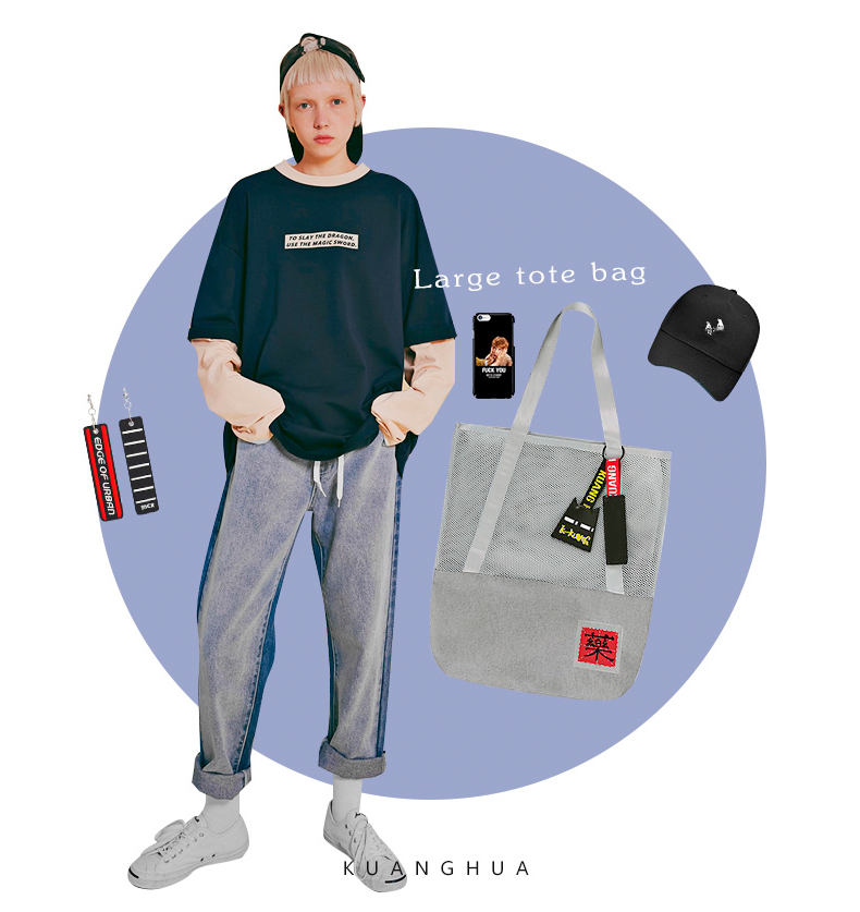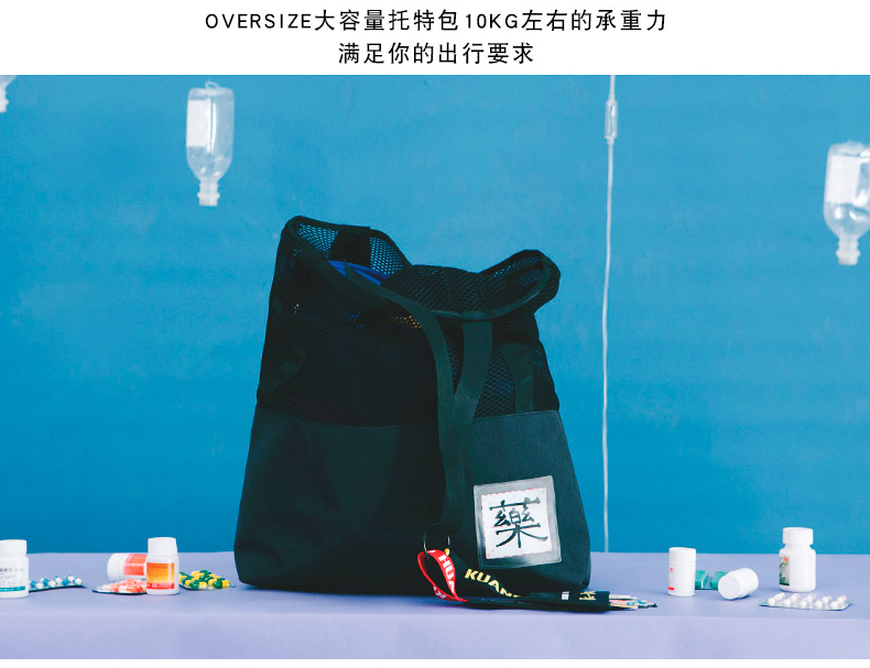 哐花村大容量网格托特包-静谧灰/金刚黑