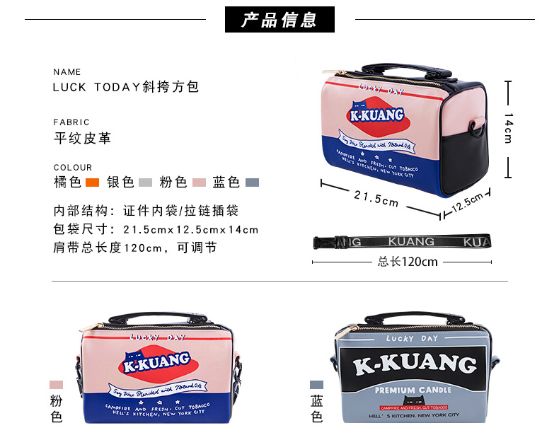 LUCK TODAY斜挎手提方包-粉色/蓝色/橘色/银色