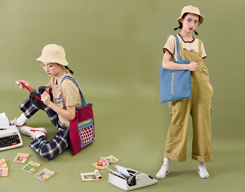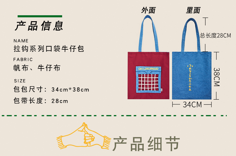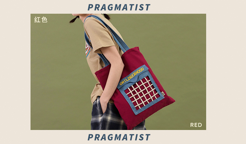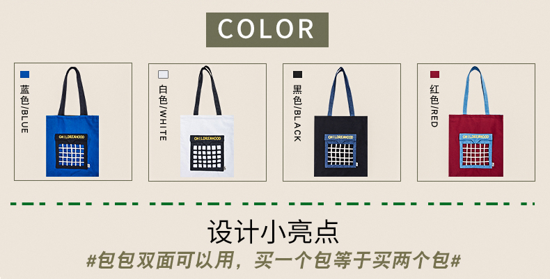 哐花村拉钩帆布两用单肩包-红色/黑色/蓝色/白色