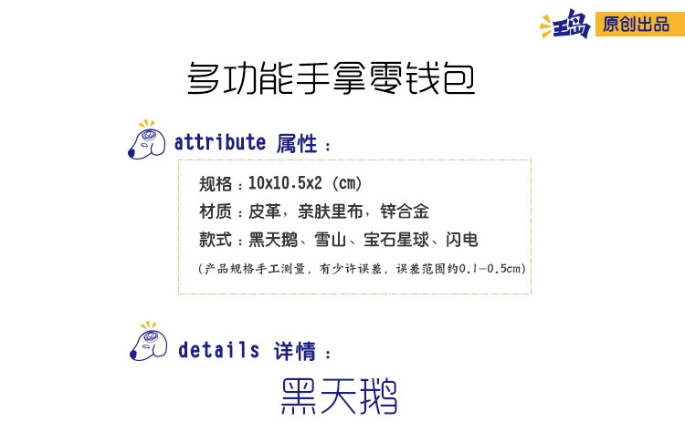 汪岛多功能手拿零钱包-黑天鹅/雪山/宝石星球/闪电
