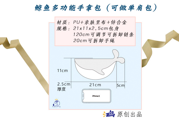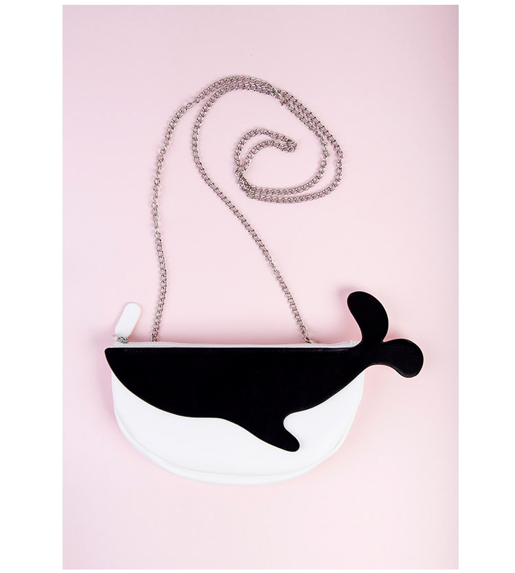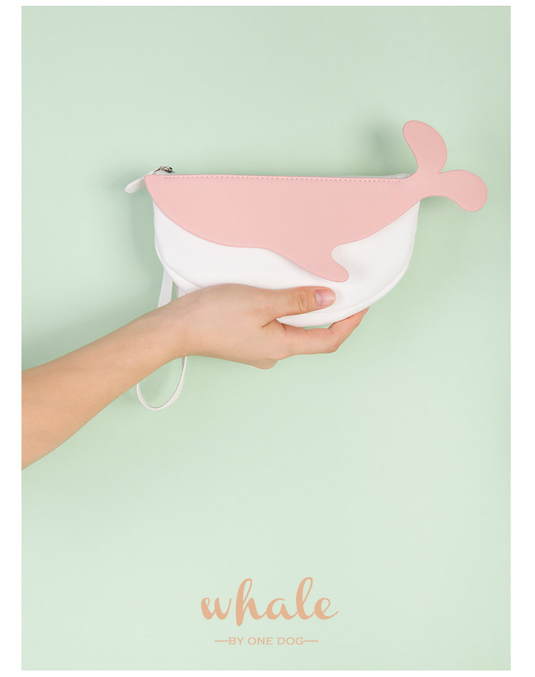 汪岛鲸鱼多功能手拿单肩包-黑白/粉白/蓝白/薄荷白