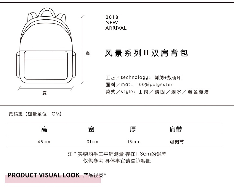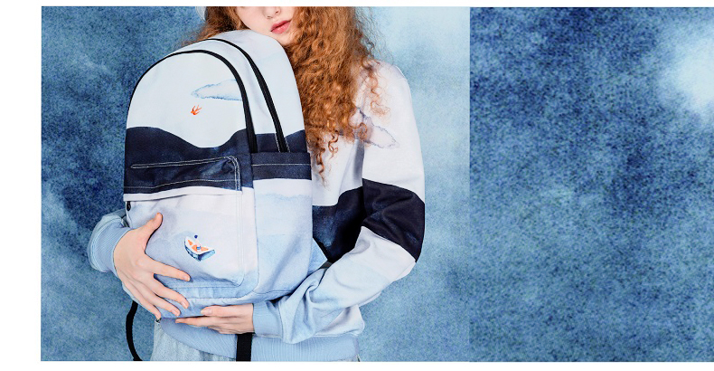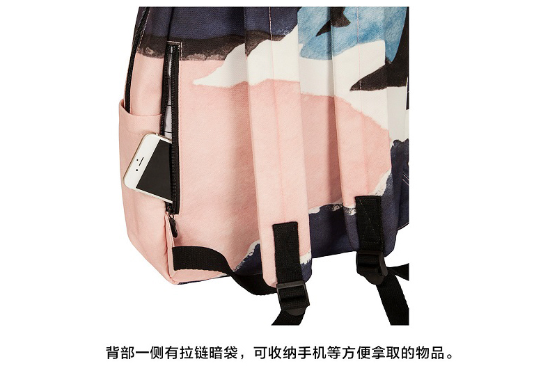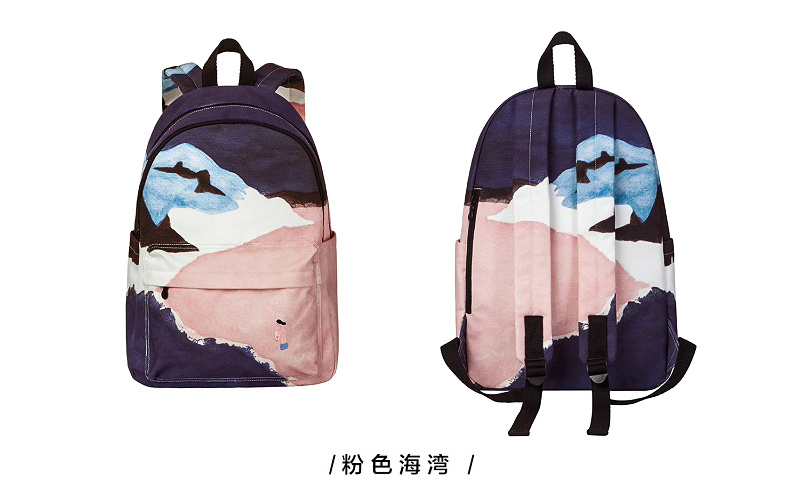 YIZI风景2印花双肩包-粉色海湾/湖水/山岗/好天气
