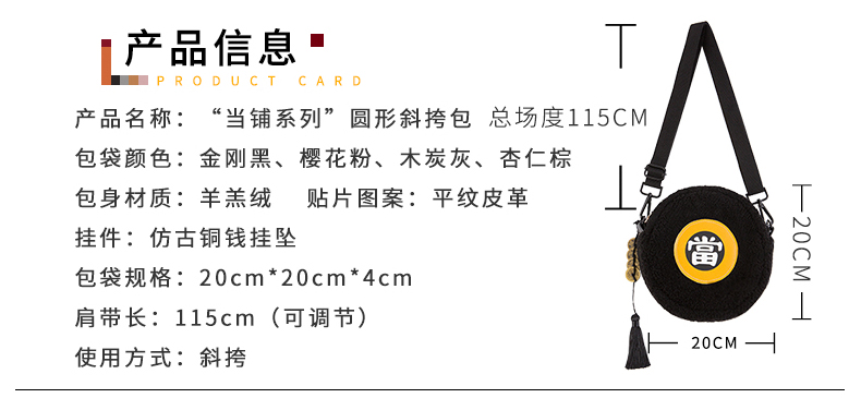哐花村典当系列毛绒单肩斜挎小圆包