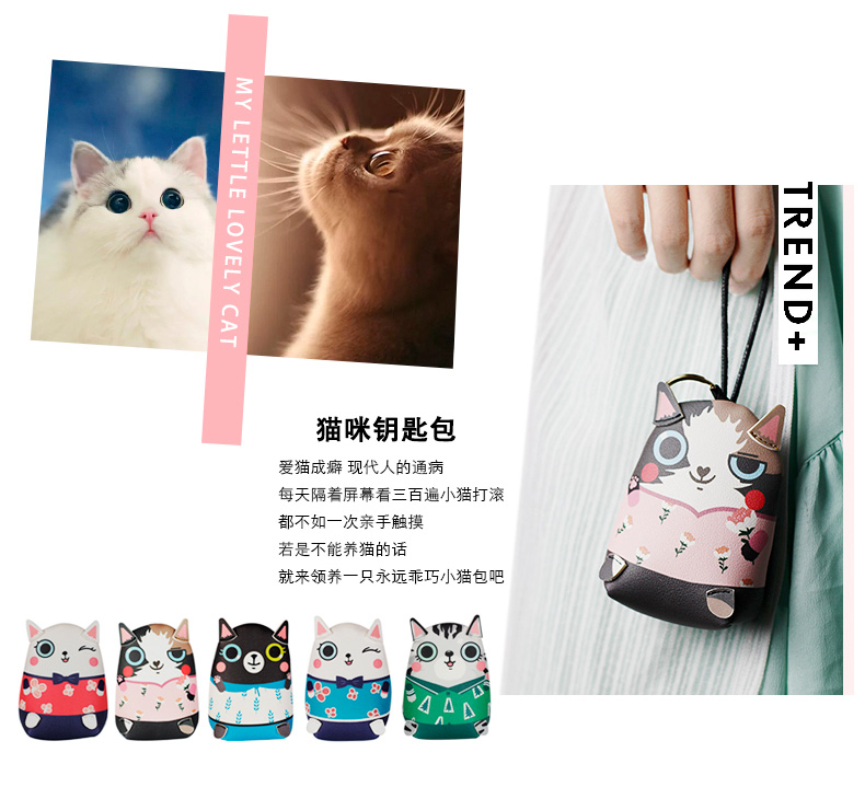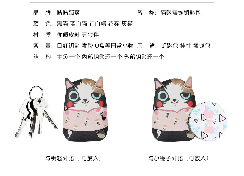 咕咕部落猫咪钥匙包-黄花猫/黑猫/粉白猫