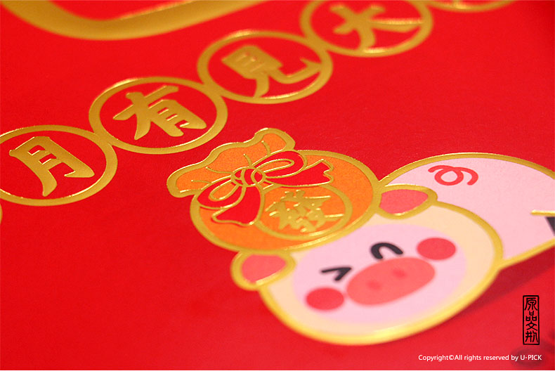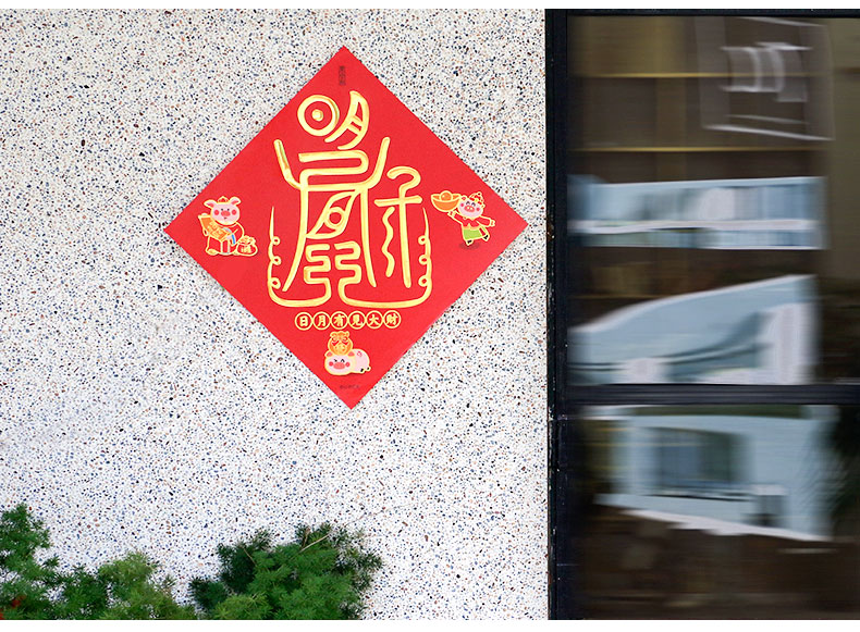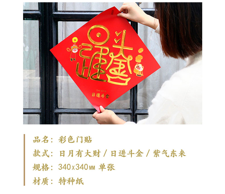 原品彩色方形门贴-日月有大财/日进斗金/紫气东来