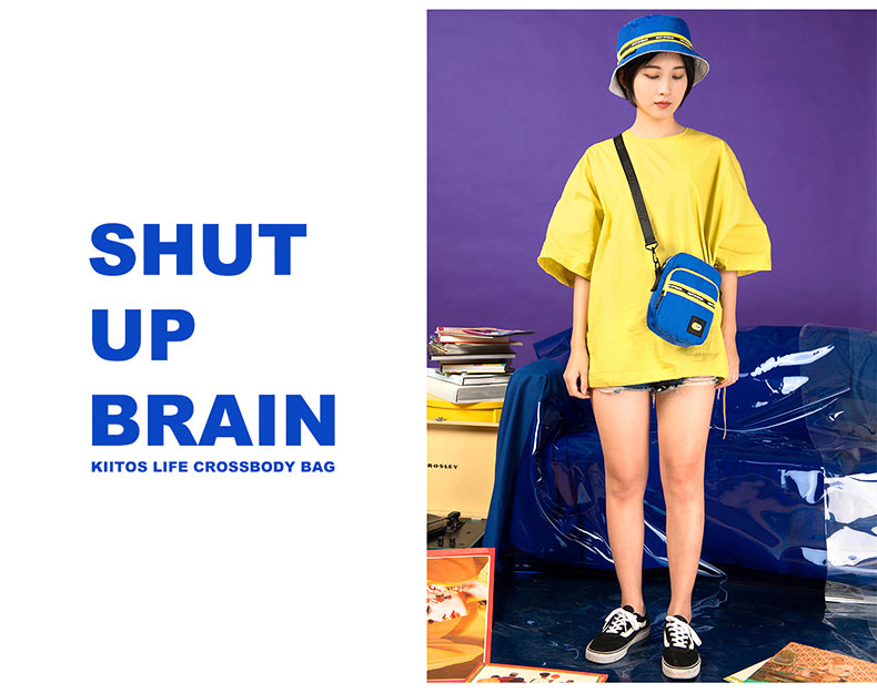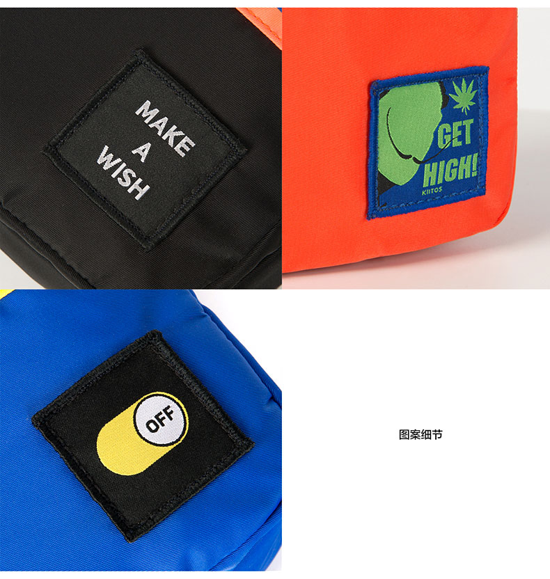 KIITOS态度主题防水尼龙斜挎包-黑色许愿/红色达利/蓝色关闭大脑袋