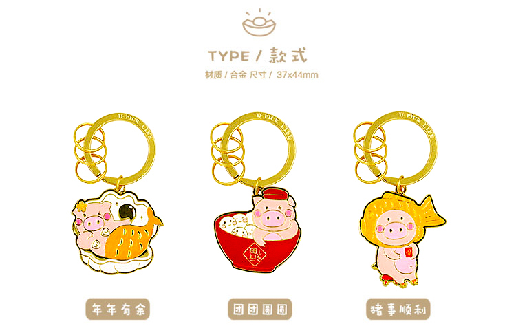 猪福到系列钥匙扣-猪事顺利/团团圆圆/年年有余