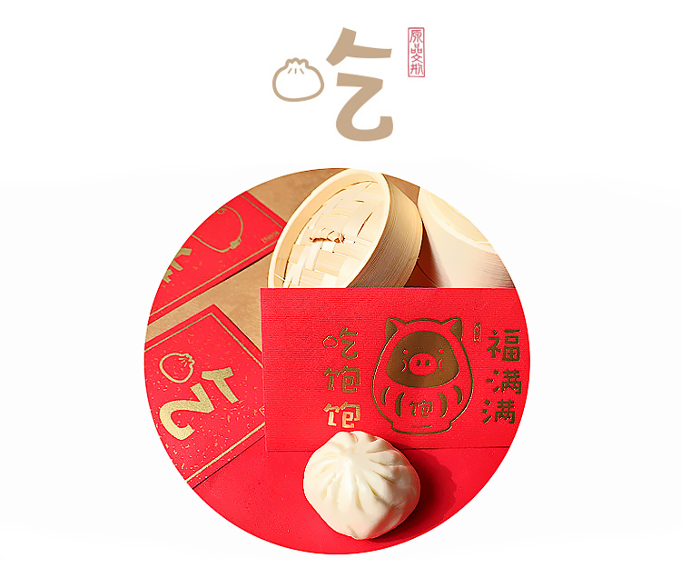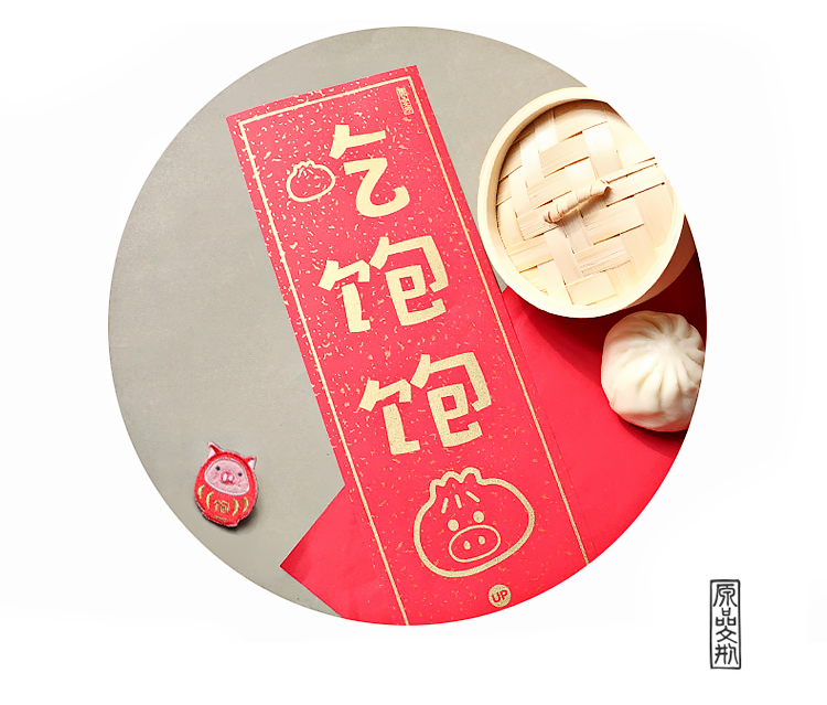 原品印金创意趣味文字小对联-吃饱饱/福满满
