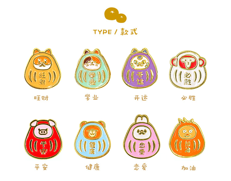 原品祈愿达摩胸针-旺财/恋爱/健康/学业/平安/开运/必胜/加油