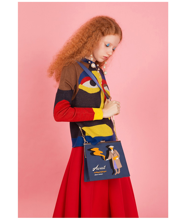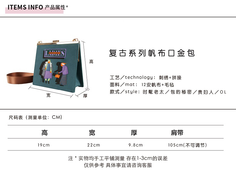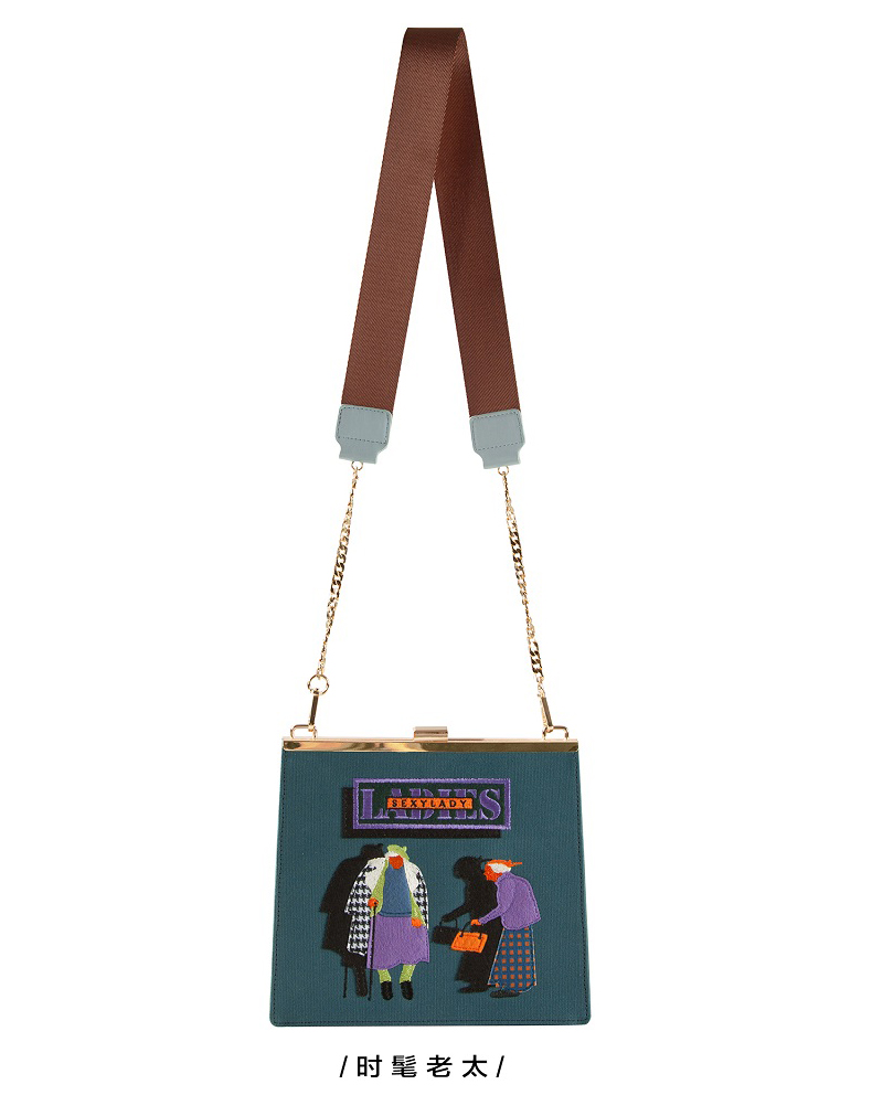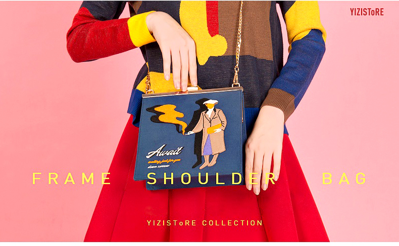 YIZI复古口金帆布刺绣单肩包-时髦老太/包的秘密/贵妇人/OL