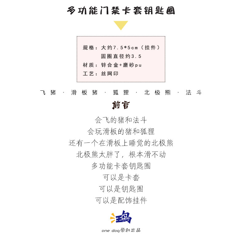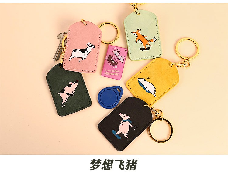 汪岛门禁卡套钥匙圈-飞猪/滑板猪/狐狸/北极熊/法斗