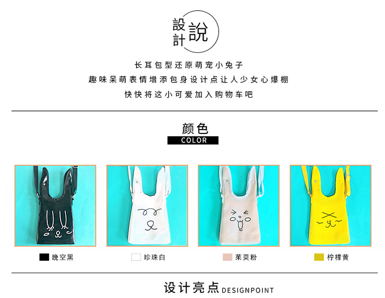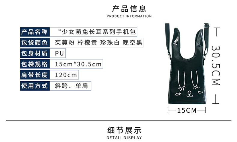 哐花村少女萌兔长耳手机包-黑色/白色/粉色/黄色
