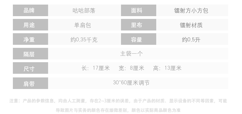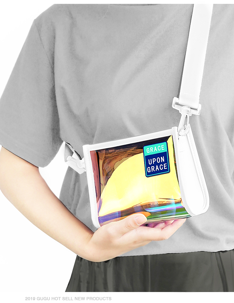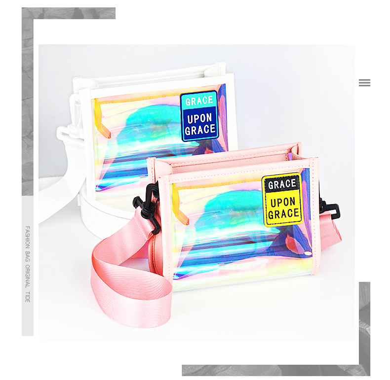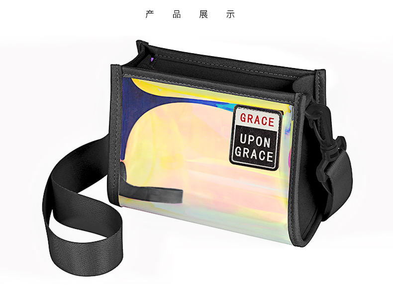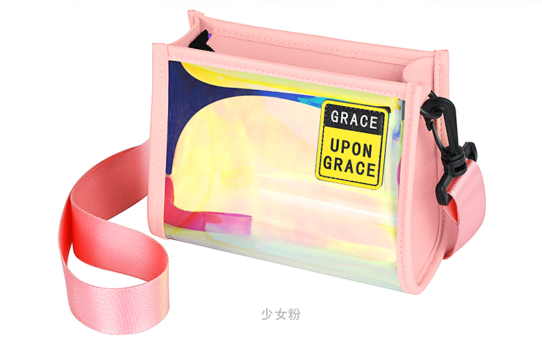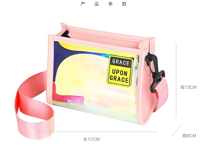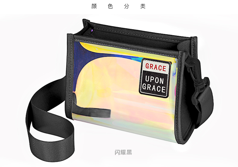 咕咕部落镭射斜挎单肩包-黑色/粉色/白色