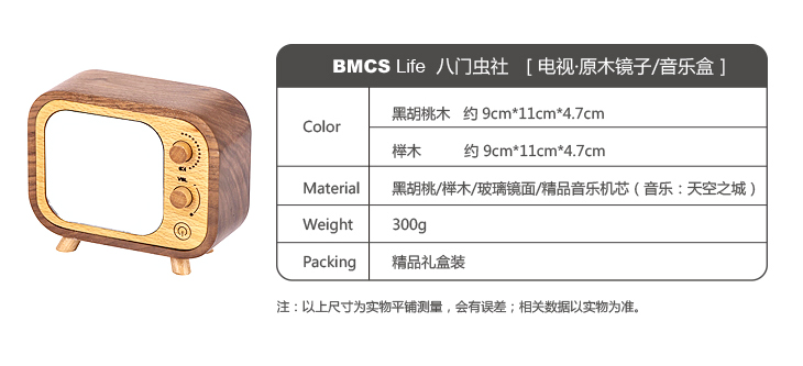 八门虫社电视原木音乐盒-黑胡桃木/榉木