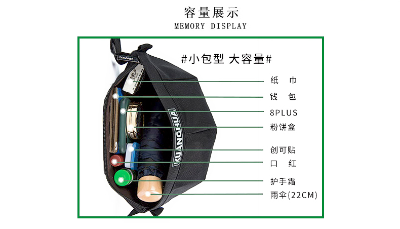 哐花村Double King半圆斜挎包腰包-黑色/橄榄绿/蓝色/红色