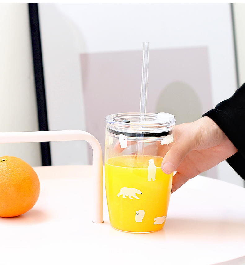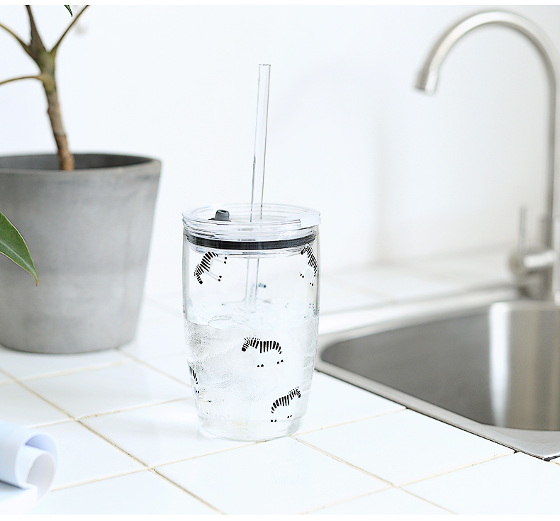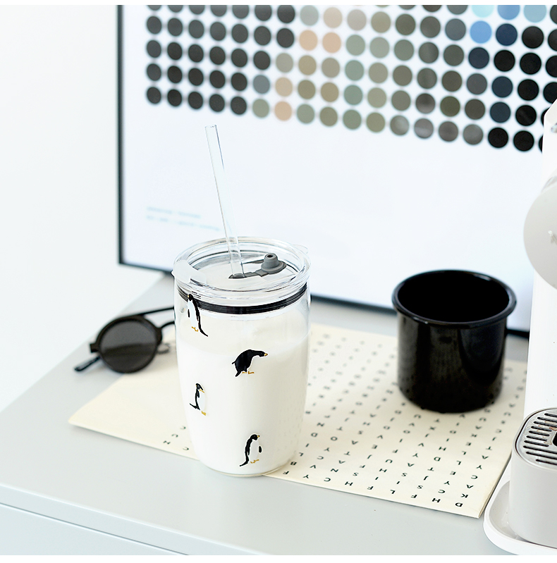 HAMO清新动物耐热玻璃吸管杯-斑马/企鹅/北极熊