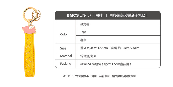 八门虫社飞咯编织皮绳钥匙扣包挂-飞鼠/飞猪/独角兽