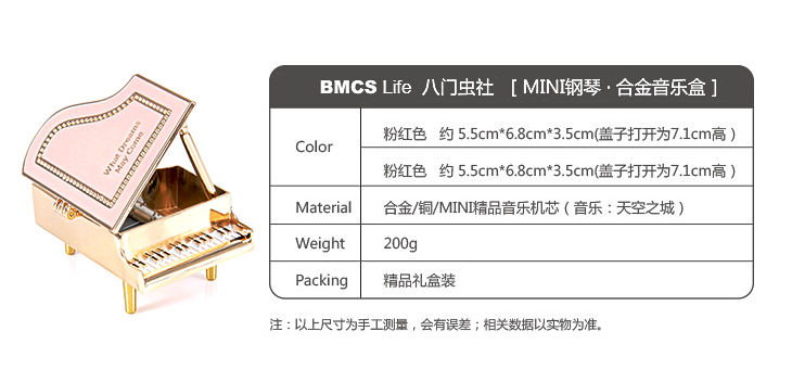八门虫社MINI合金钢琴音乐盒-粉色/白色