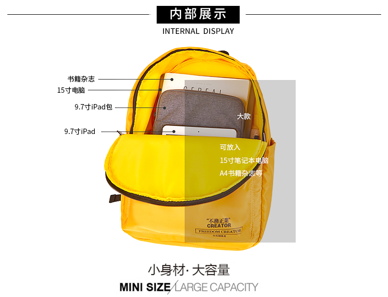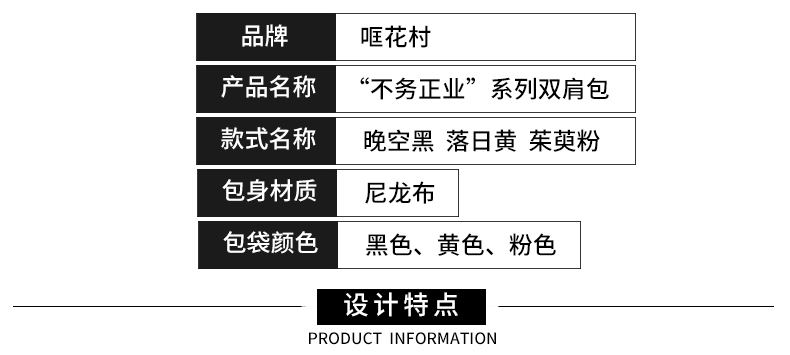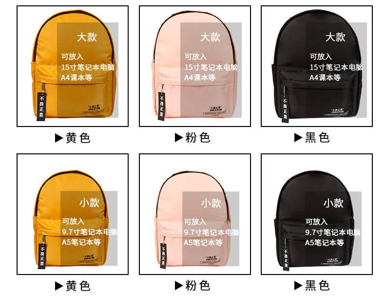 哐花村不务正业双肩包-黄色/黑色/粉色-大号/小号