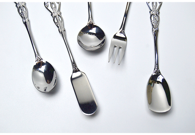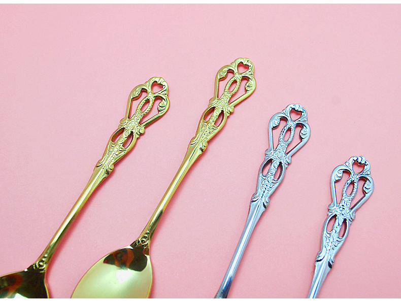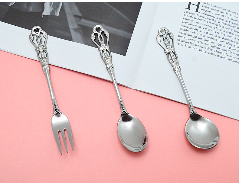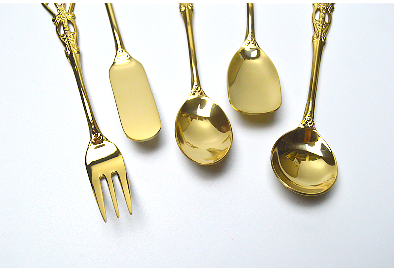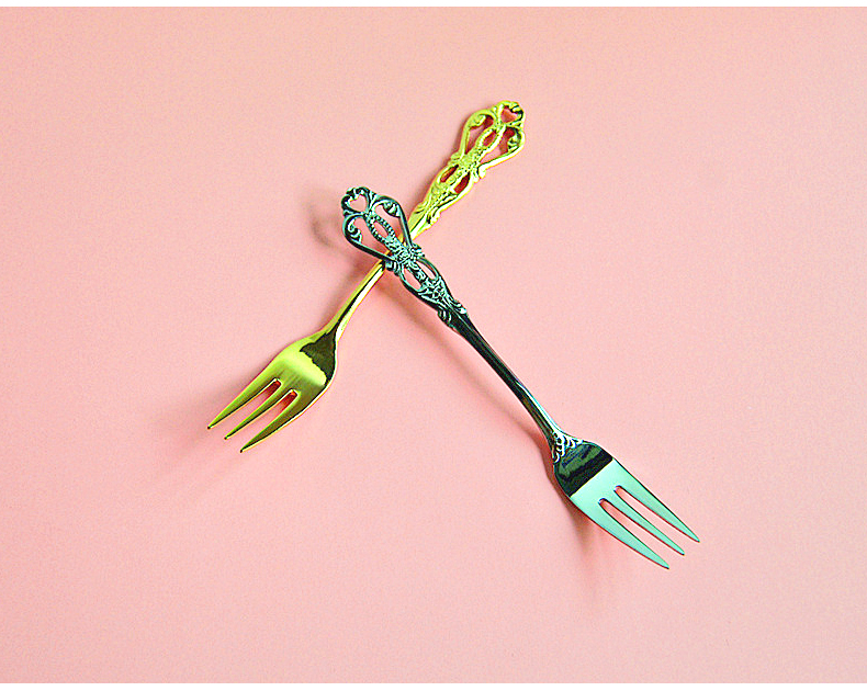 欧式雕花不锈钢叉勺-金色/银色