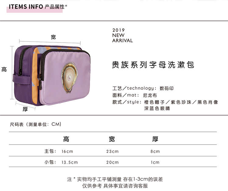 YIZISTORE贵族系列洗漱化妆包-紫色珍珠/黄色帽子/深蓝色眼睛/黑色肖像