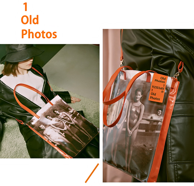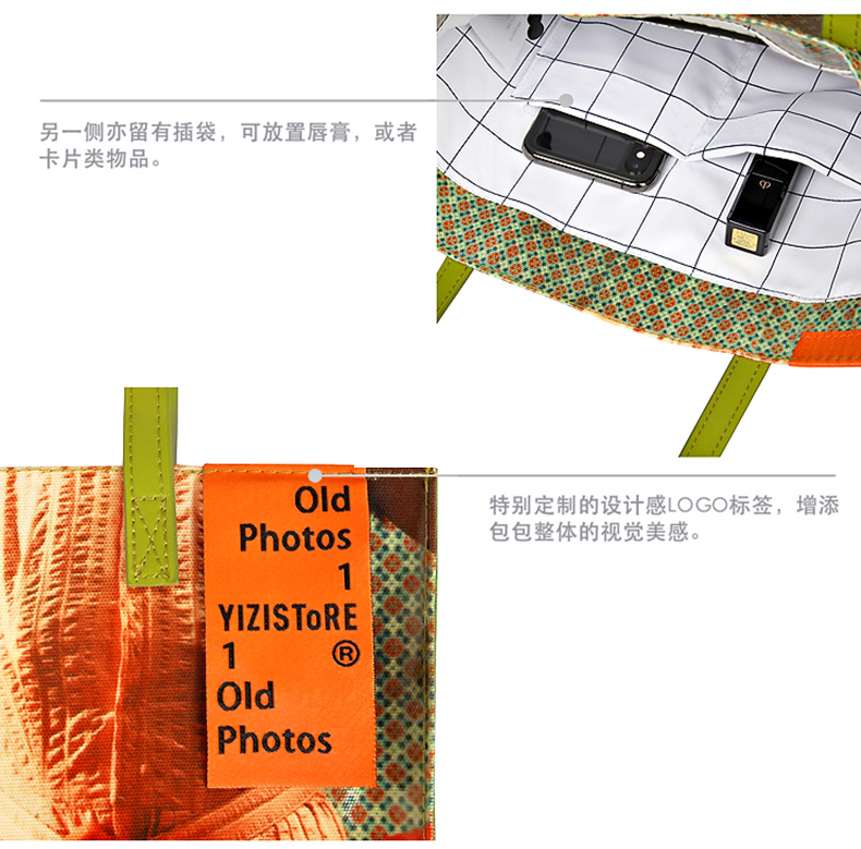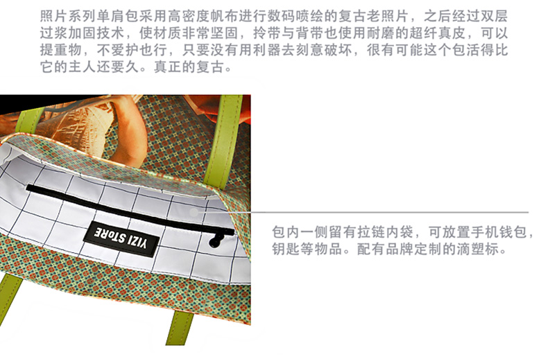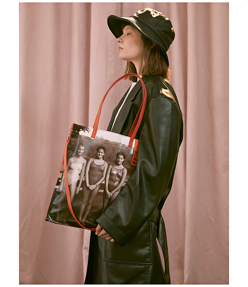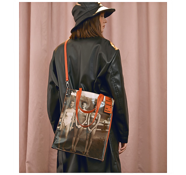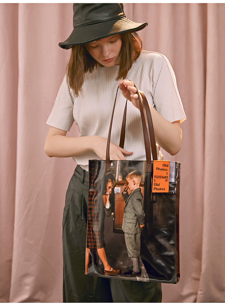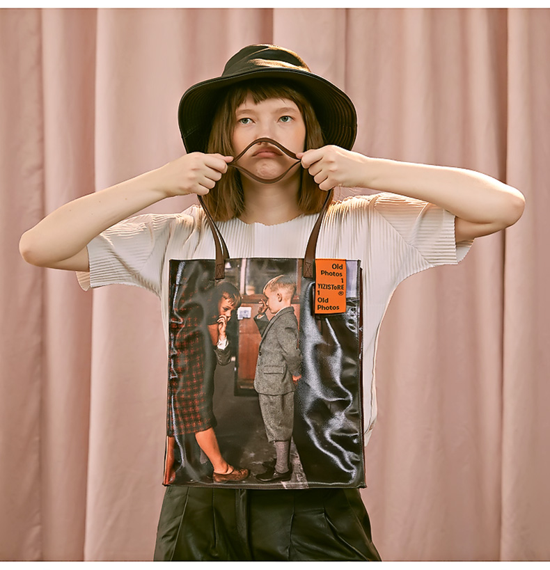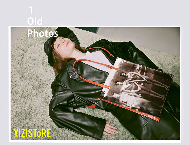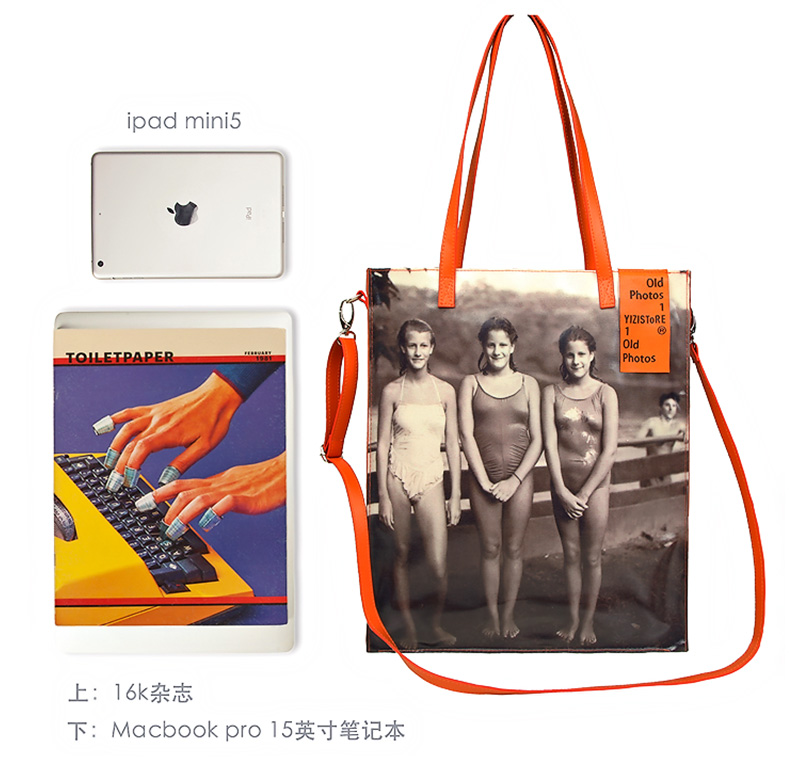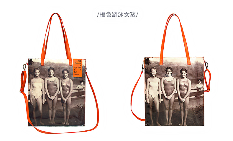 YIZI照片系列单肩包-黑白小女孩/咖色小男孩/绿色看报纸/橙色游泳女孩