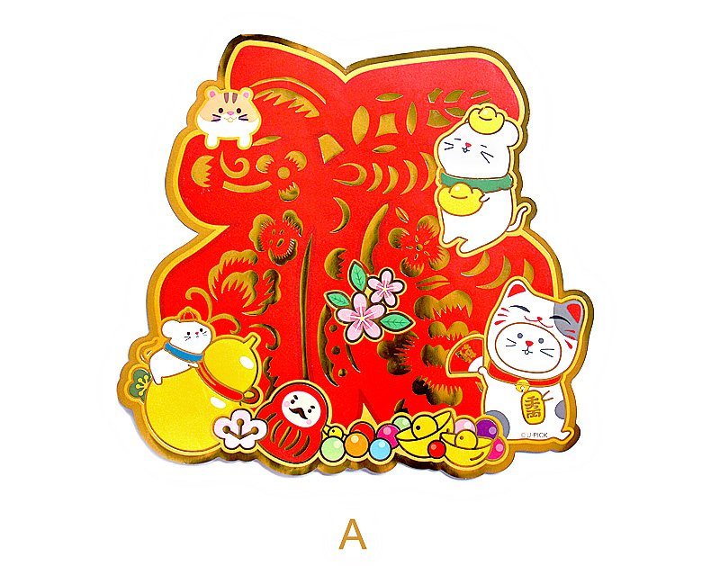 原品彩色立体鼠年对装门贴-平安纳福/吉祥富贵/开运发财/健康幸福
