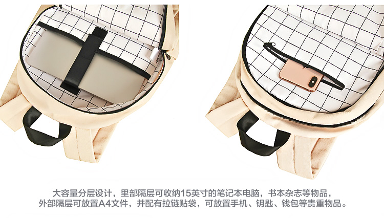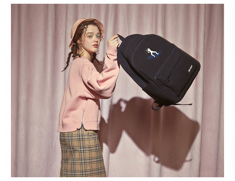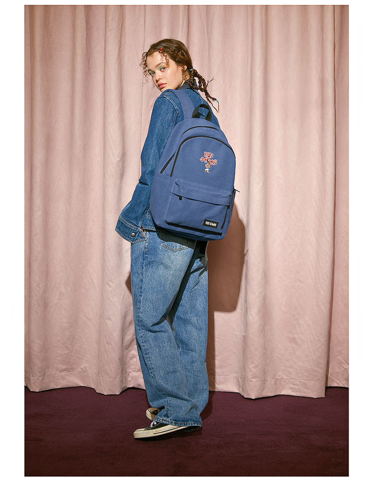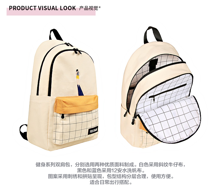 YIZISTORE健身系列帆布刺绣双肩包-米白色/黑色/蓝色