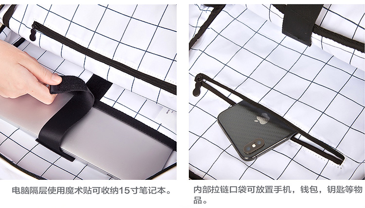 YIZISTORE健身系列帆布刺绣双肩包-米白色/黑色/蓝色