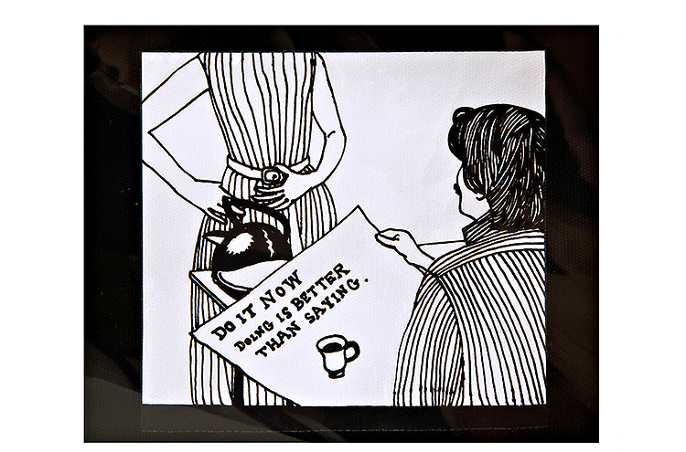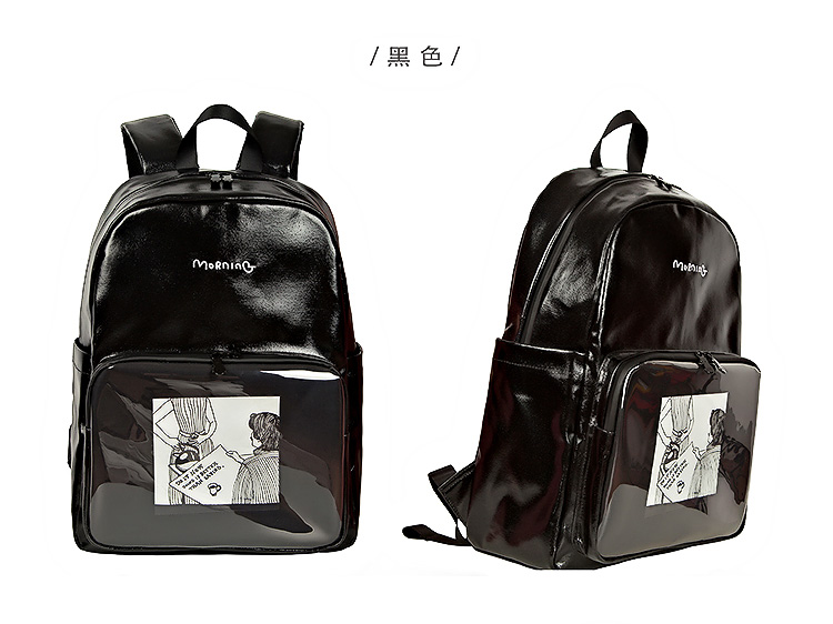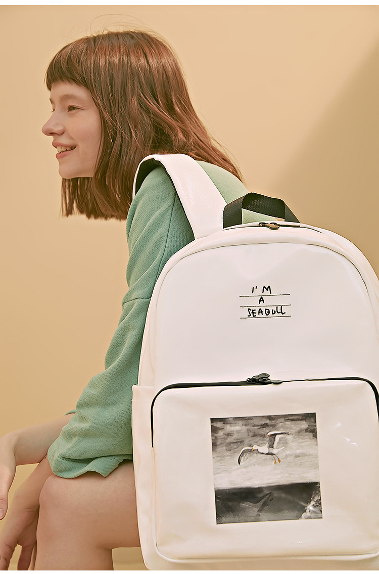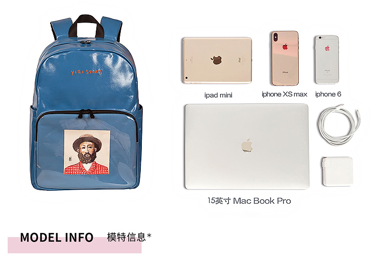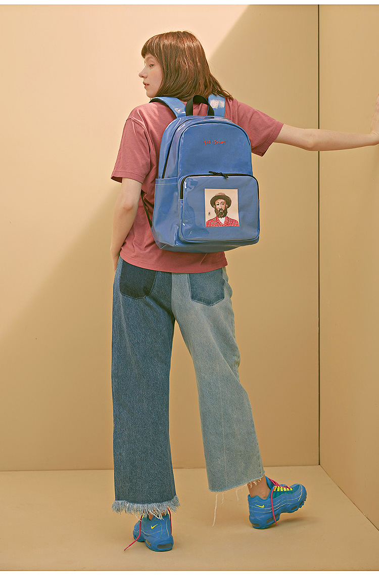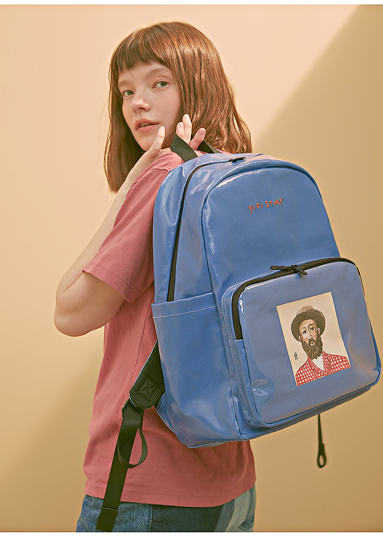 YIZISTORE一只故事系列帆布印花双肩包-黑色/白色/蓝色