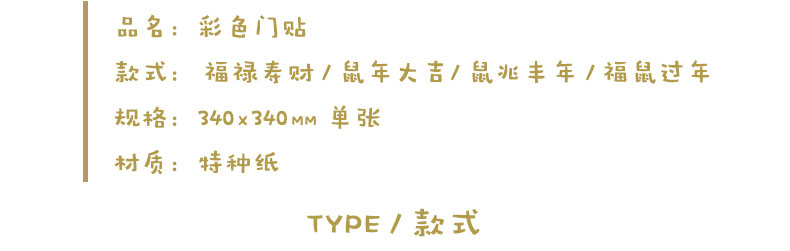 原品鼠年方形彩色门贴-A款/B款/C款/D款