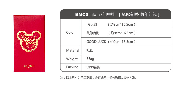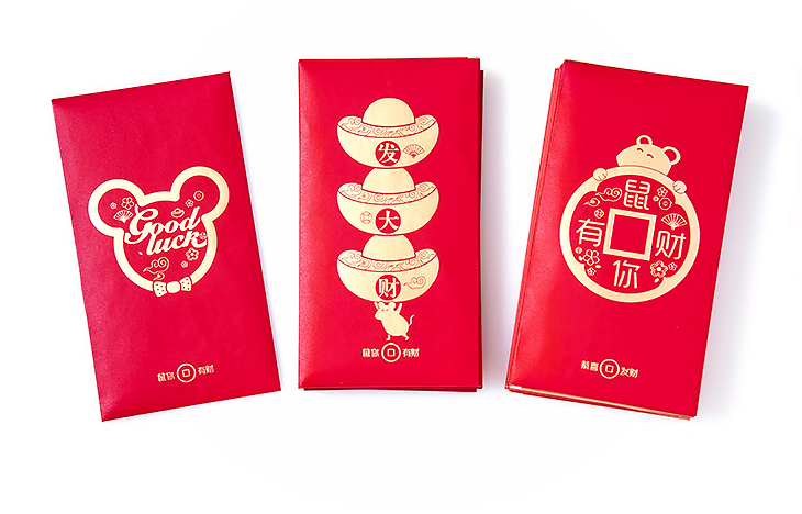 八门虫社鼠年千元版红包礼金袋(六枚装)-鼠你有财/发大财/GOOD LUCK