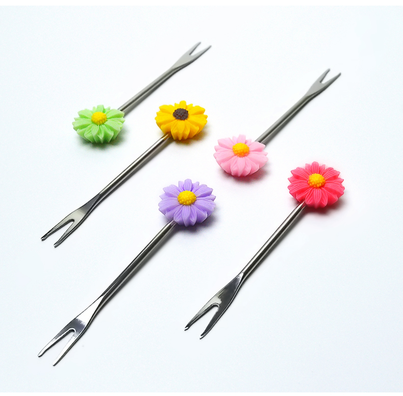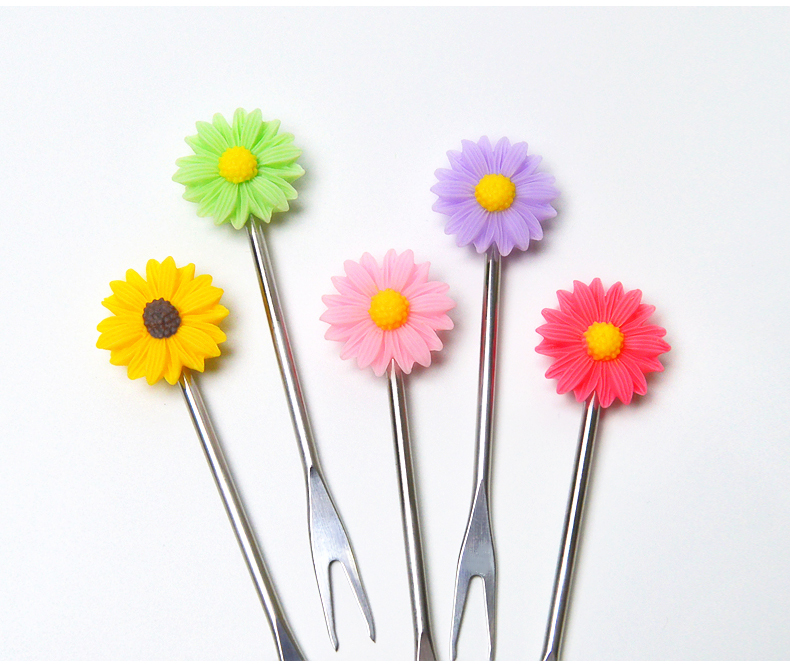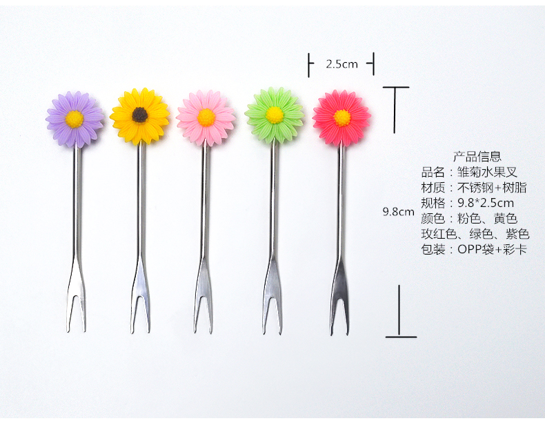 雏菊水果叉-粉色/黄色/玫红/绿色/紫色