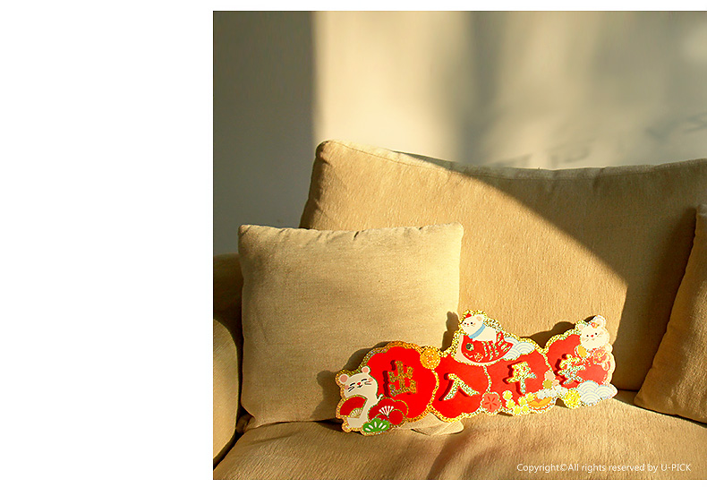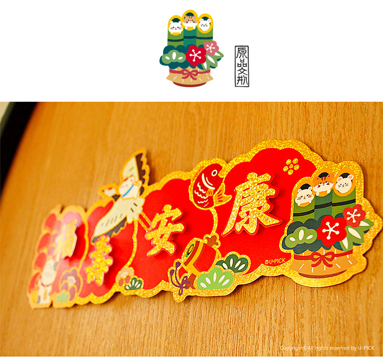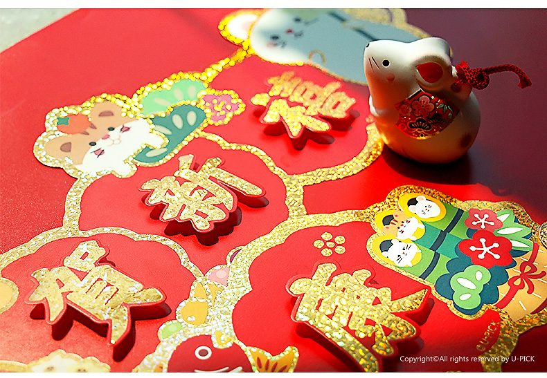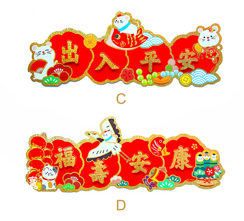 原品彩色立体长条鼠年门贴-迎春接福/恭贺新禧/出入平安/福寿安康