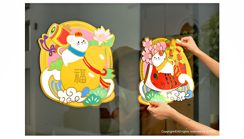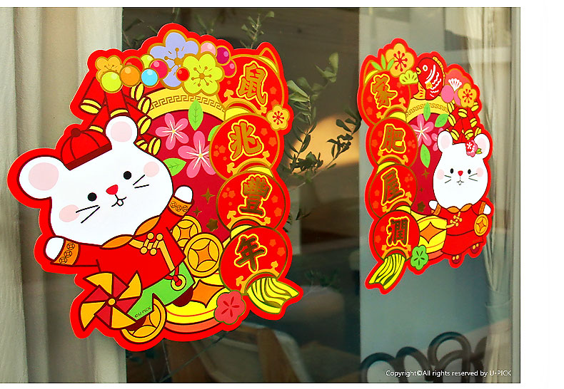 原品鼠年异形立体对装门贴-平安大吉/招财进宝