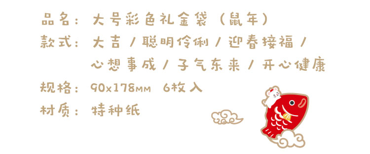 原品大号彩色鼠年礼金袋-大吉/聪明伶俐/开心健康/心想事成/子气东来/迎春接福